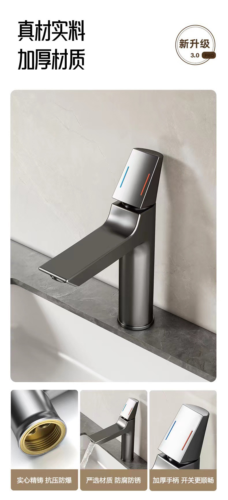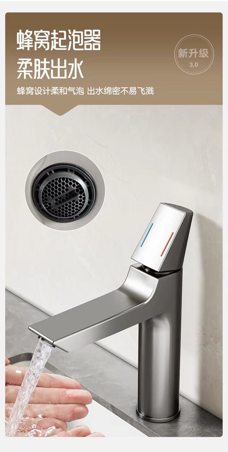 新型水龙头家用冷热洗手池卫生间全铜浴室洗漱台面盆龙头枪灰色 English | 投诉