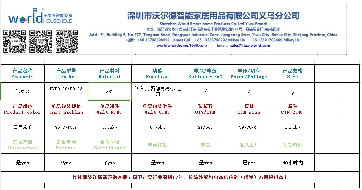 认证: 无 是否一般纳税人: 是 材质: ABS 品牌: 否 货号: KY50128/KY50126 产品类别: 臀部清洗 使用方式: 按键面板切换 规格: KY50126,KY50128 产地: 中国 加工方式: 来样定制 重量: 3.0 kg/块