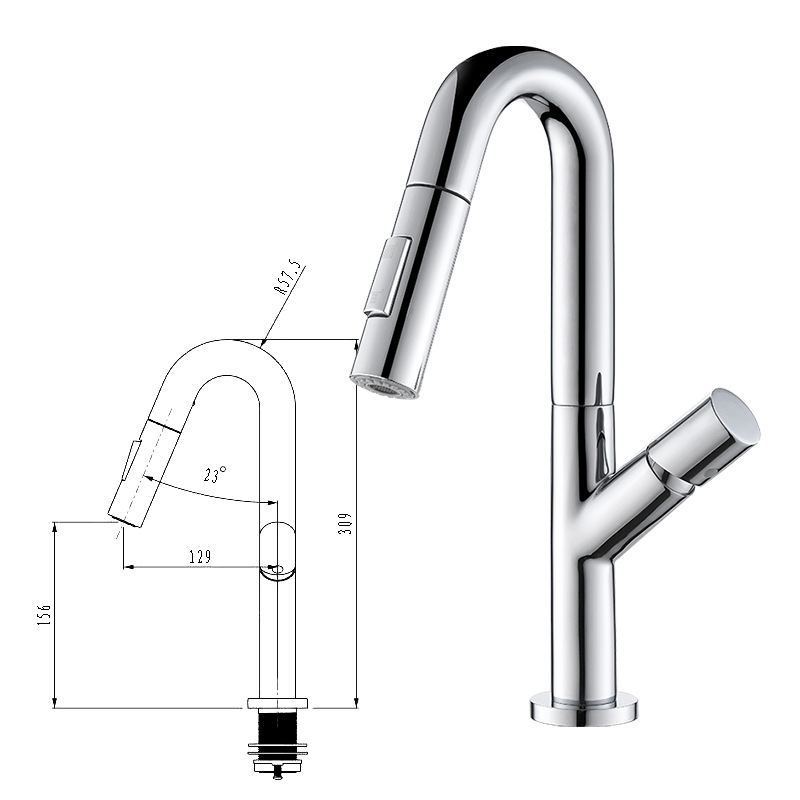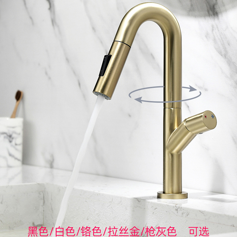 白色面盆厨房抽拉式水龙头家用浴室柜盆加高台上盆洗衣柜水槽龙头 English | 投诉