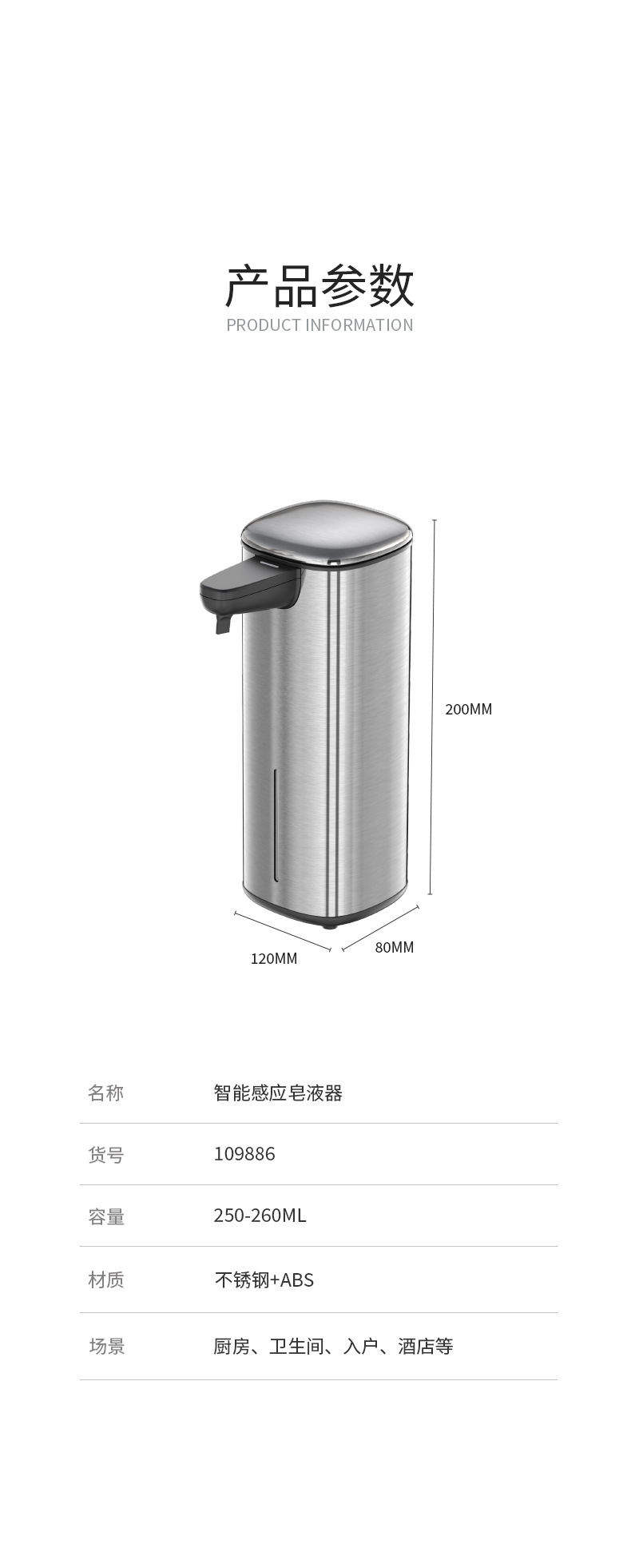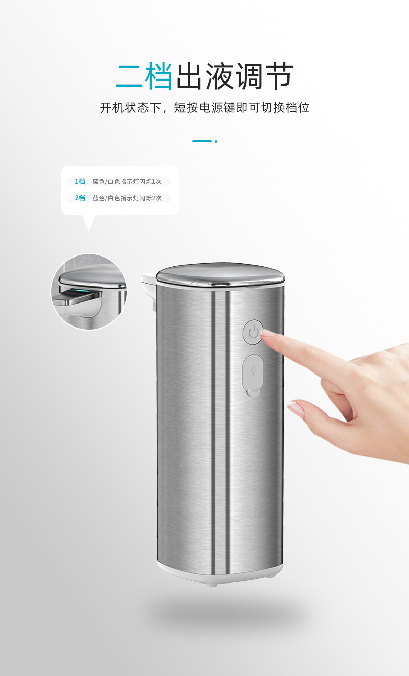 跨境厨房浴室自动智能感应皂液器usb充电长续航不锈钢洗手出泡器 English | 投诉