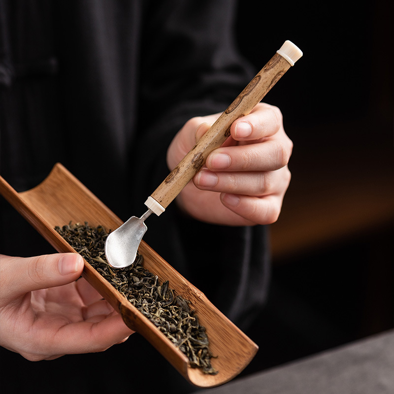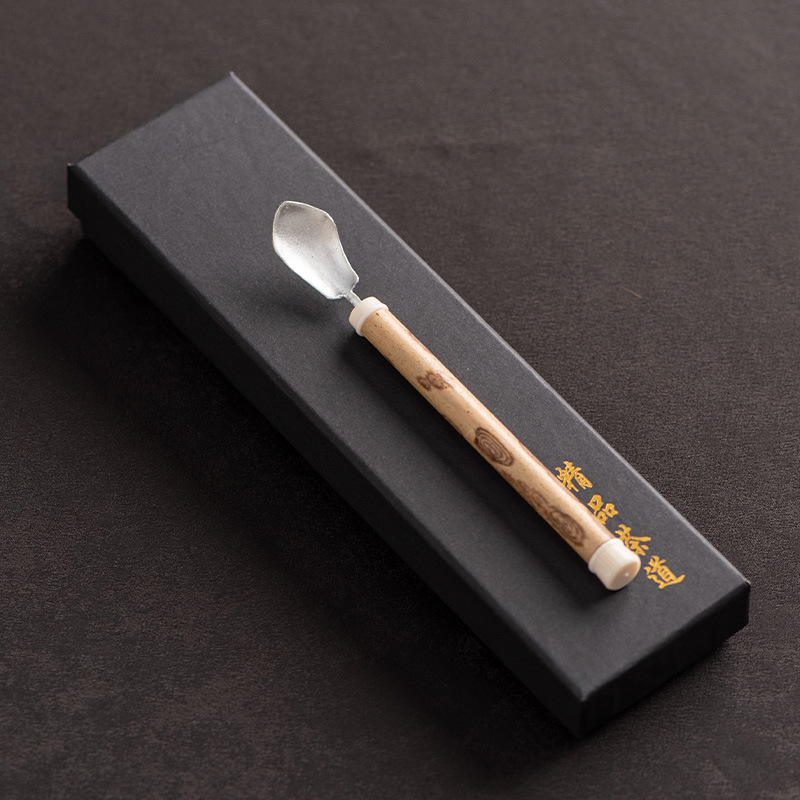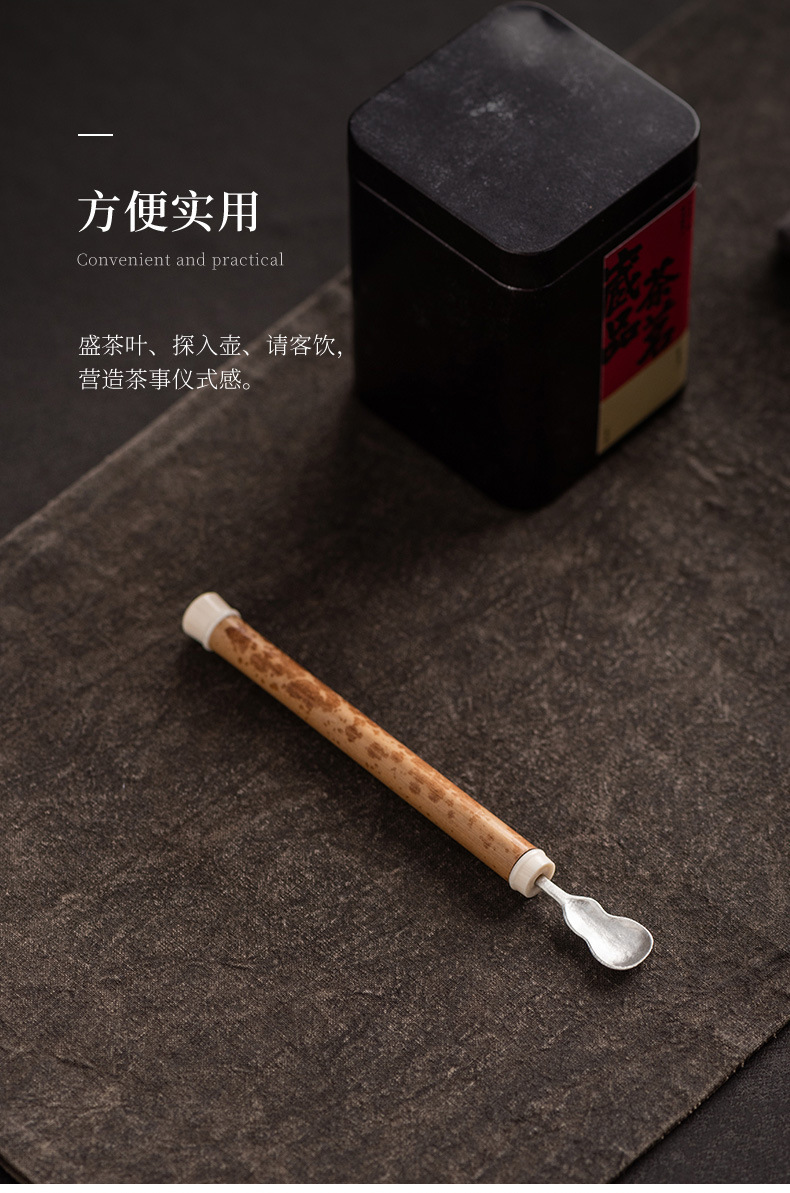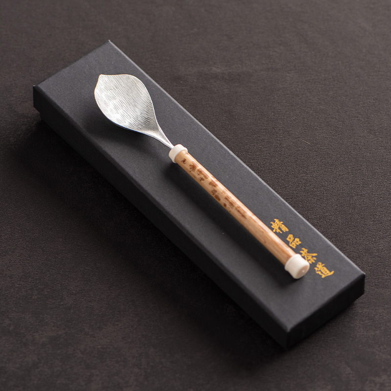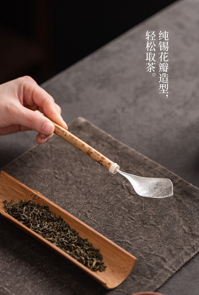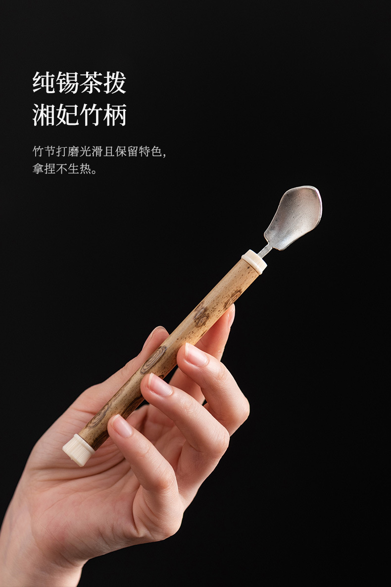 湘妃竹柄茶勺茶拨纯锡制茶叶铲单个分茶勺家用茶道配件取茶器茶匙