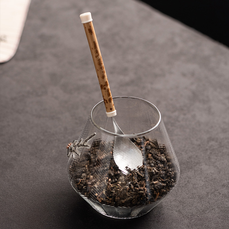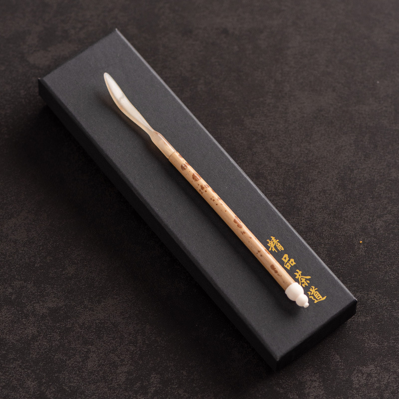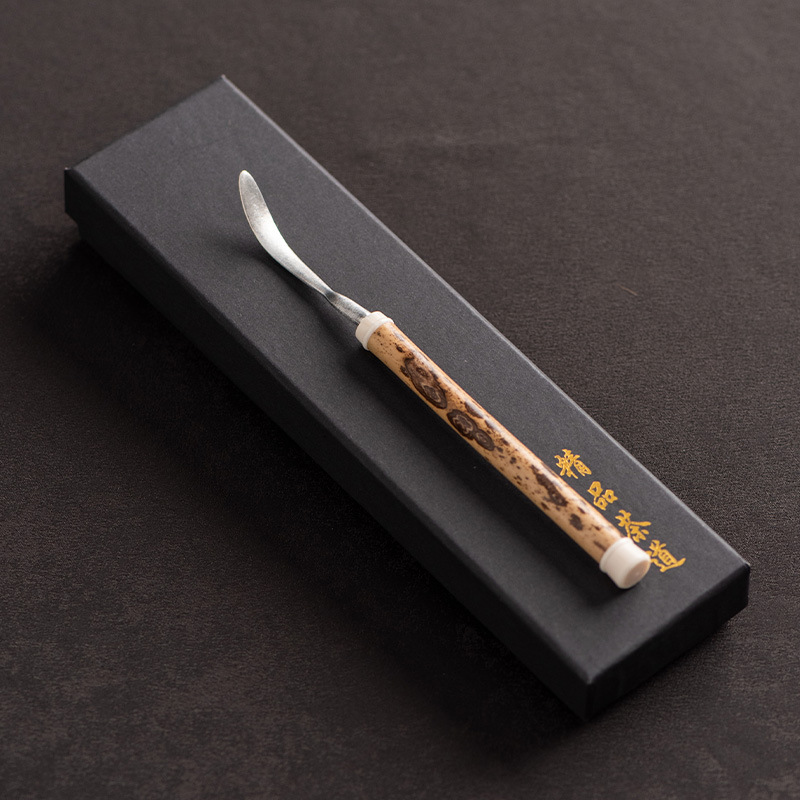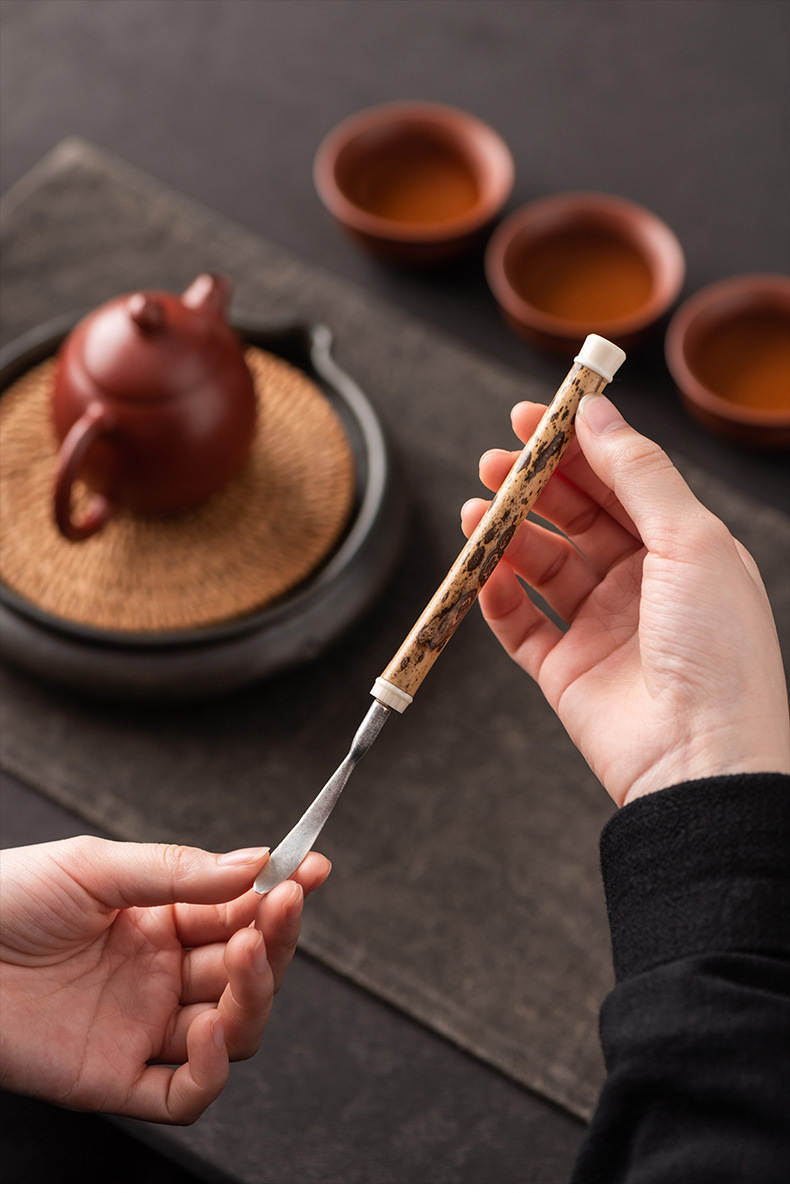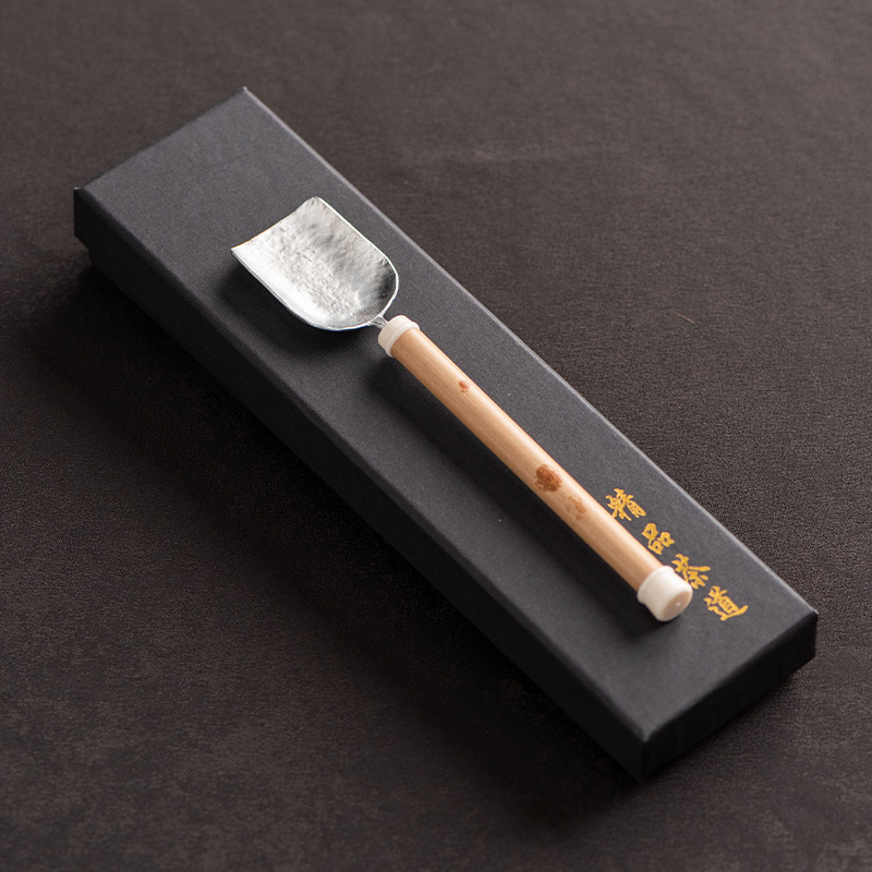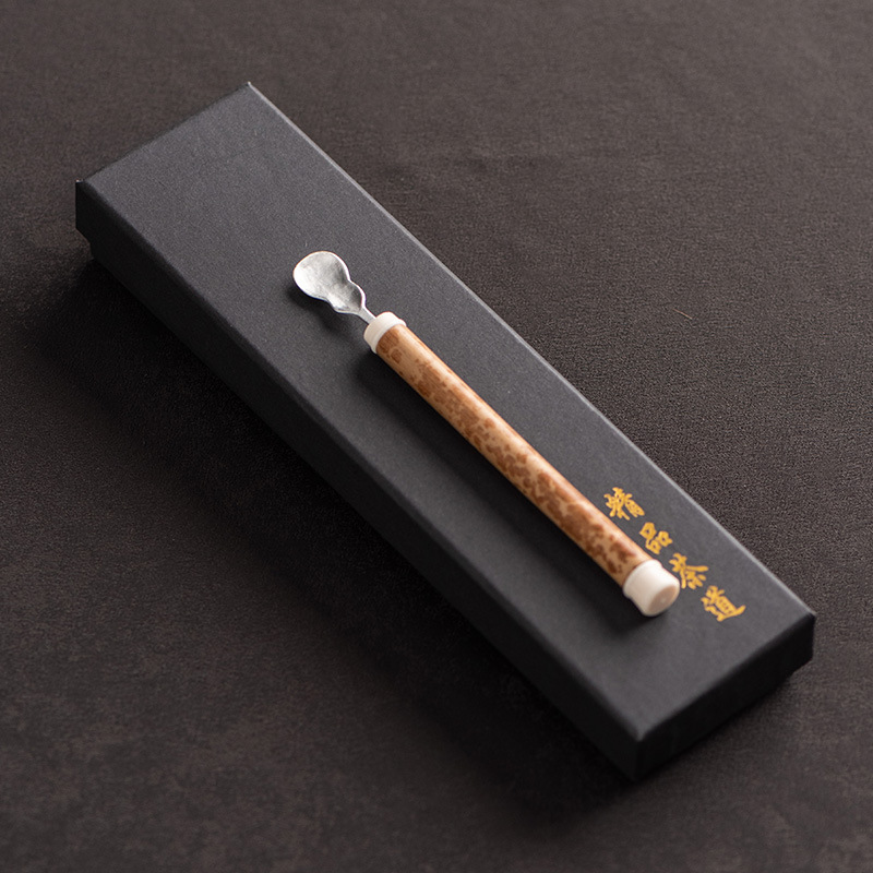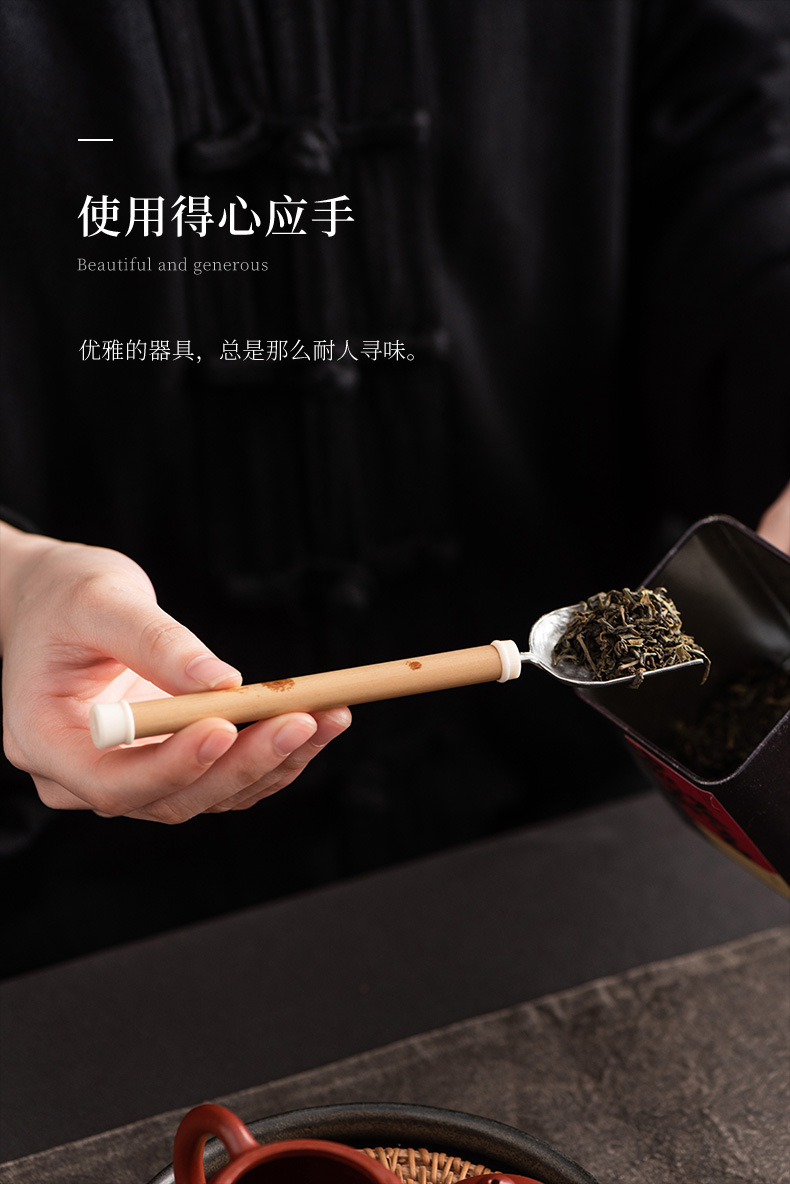 湘妃竹柄茶勺茶拨纯锡制茶叶铲单个分茶勺家用茶道配件取茶器茶匙