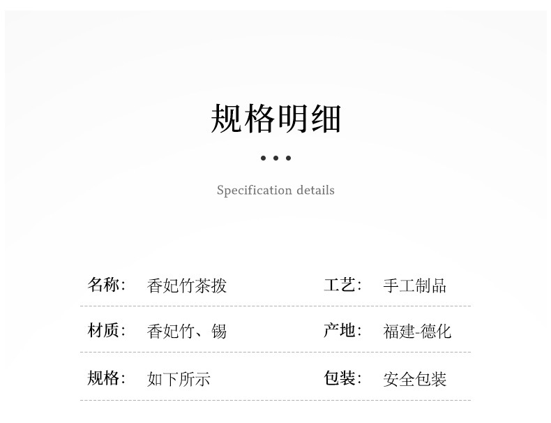 品牌: 上品鑫 是否进口: 否 产品类别: 茶道配件 材质: 竹/锡 产地: 德化 产品上市时间: 2024年春 价格段: 20-30元 是否有包装: 是 包装: 礼盒 重量(含包装): 咨询客服 重量: 0.5 kg/个 装箱信息:长宽高:10X10X10cm 装箱重量: 1KG 装箱数量:5pcs