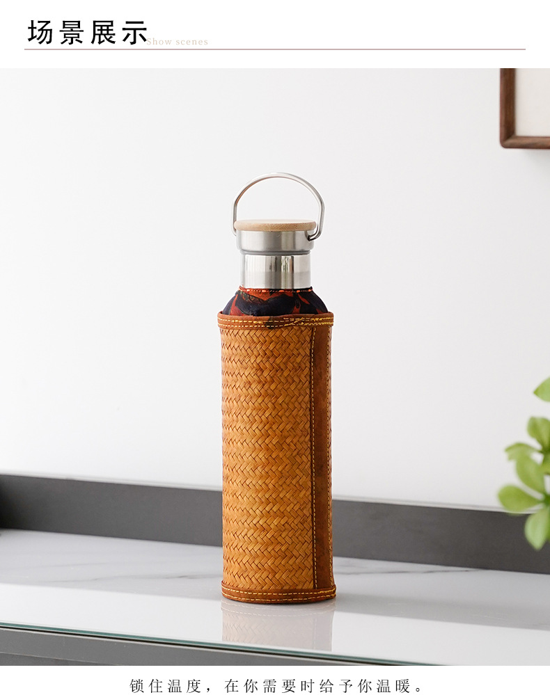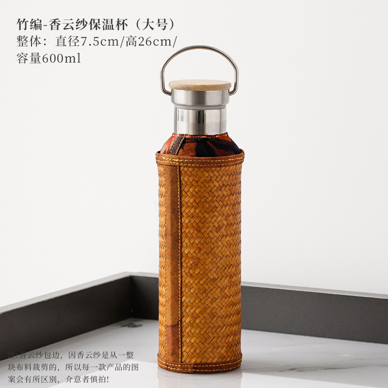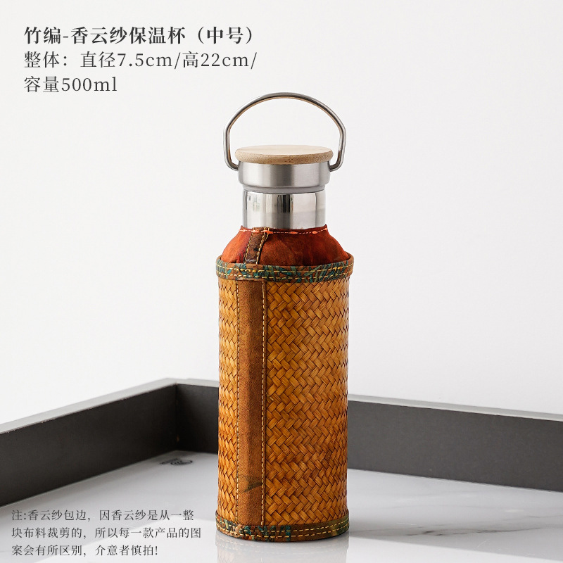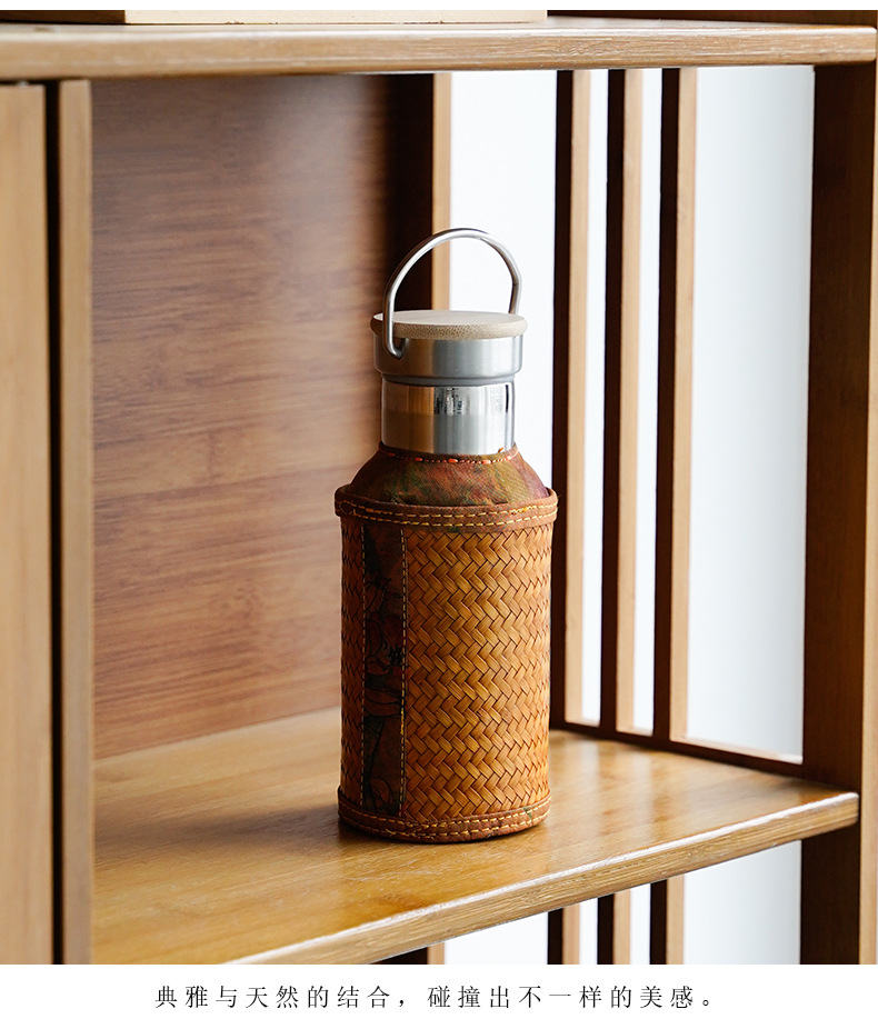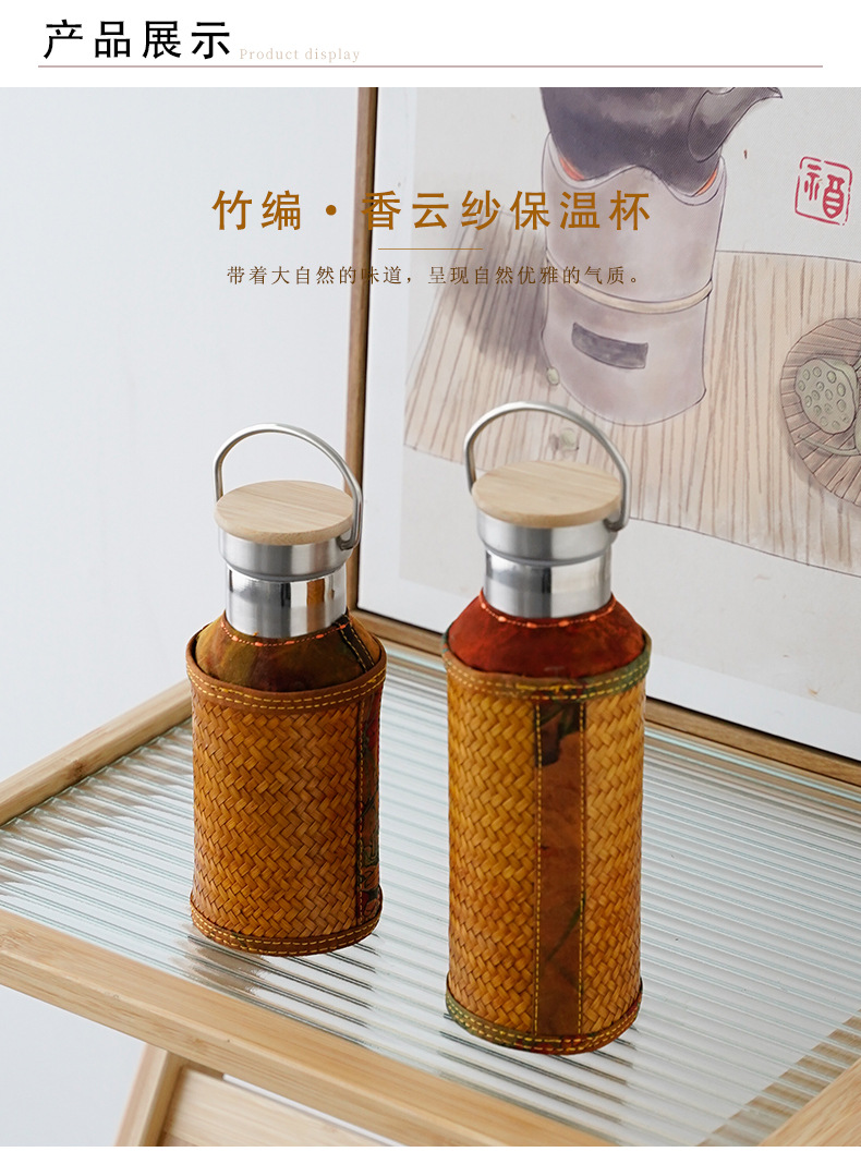 竹编水杯保温热水壶高档香云纱旅行便携杯子复古家用不锈钢暖水瓶