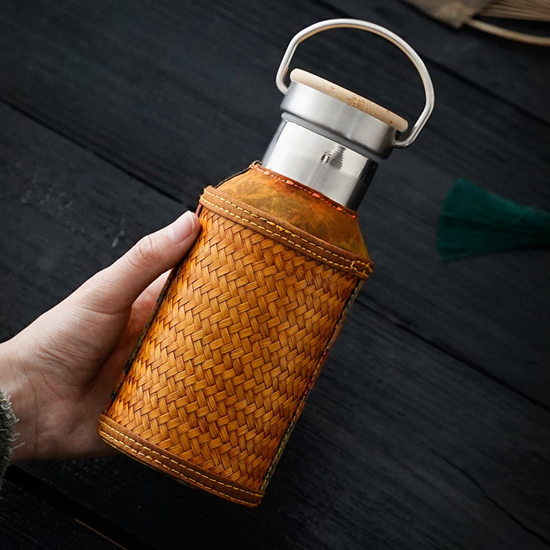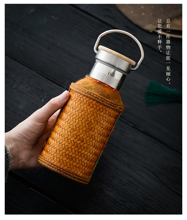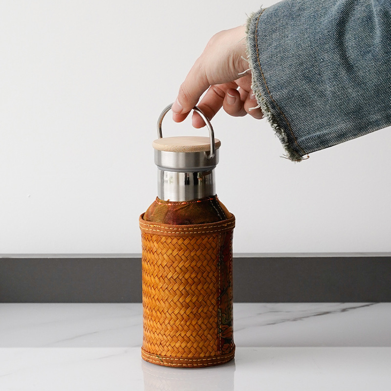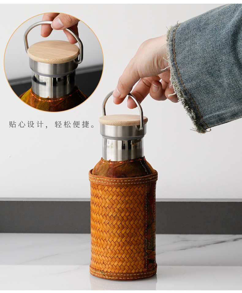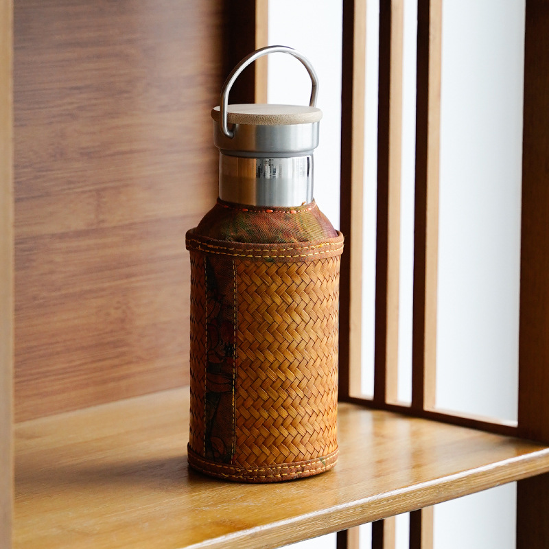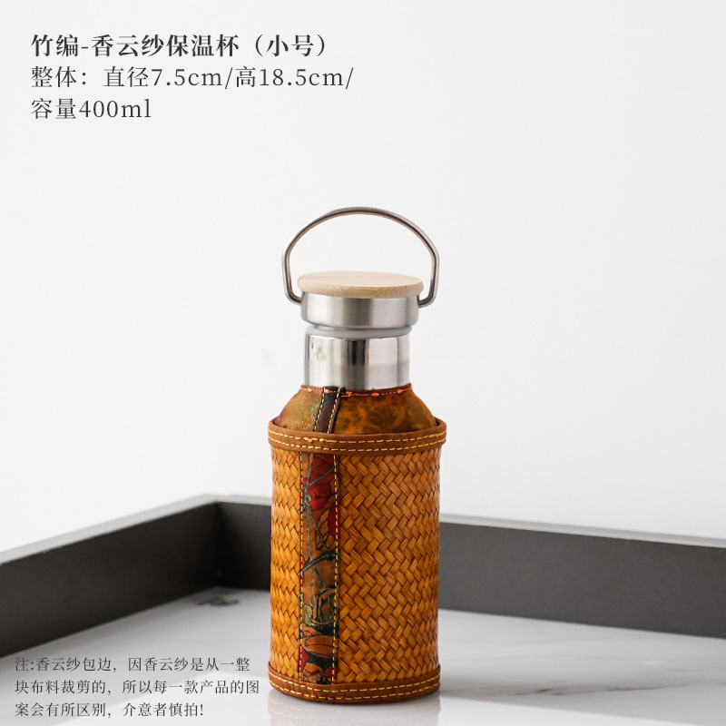 竹编水杯保温热水壶高档香云纱旅行便携杯子复古家用不锈钢暖水瓶