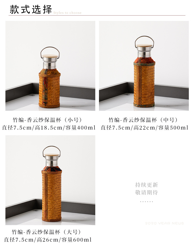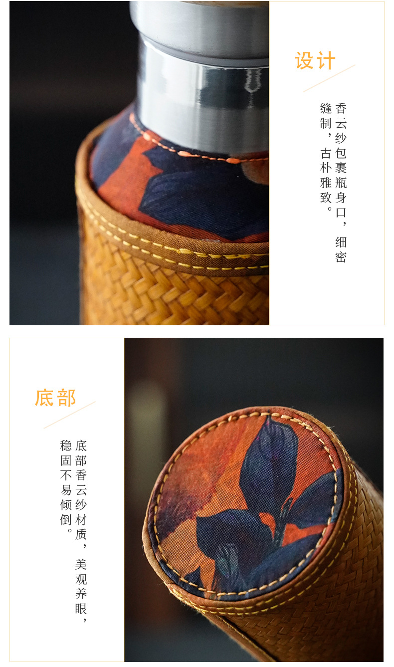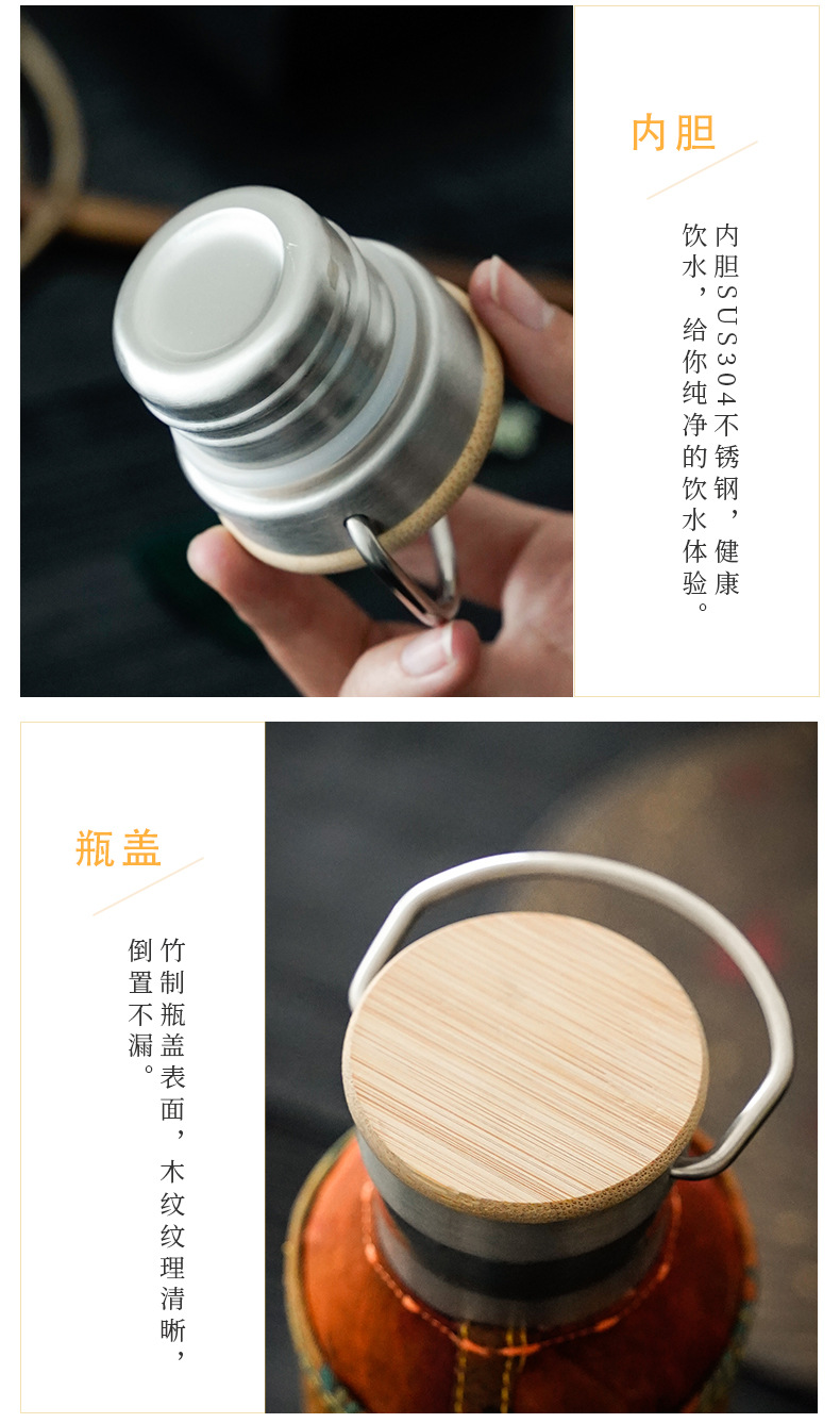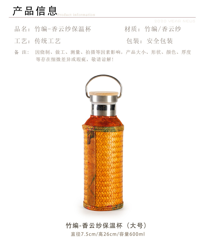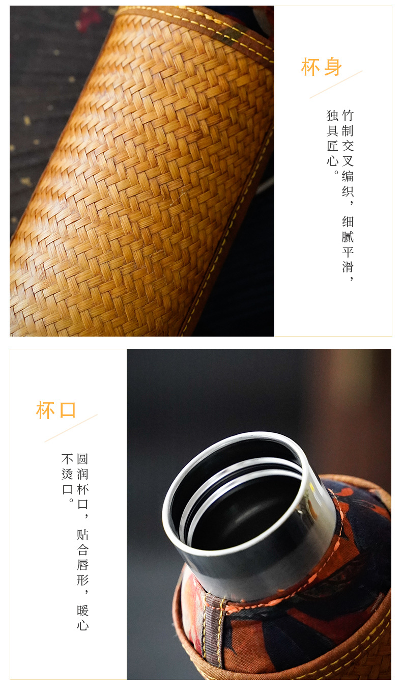 竹编水杯保温热水壶高档香云纱旅行便携杯子复古家用不锈钢暖水瓶 投诉