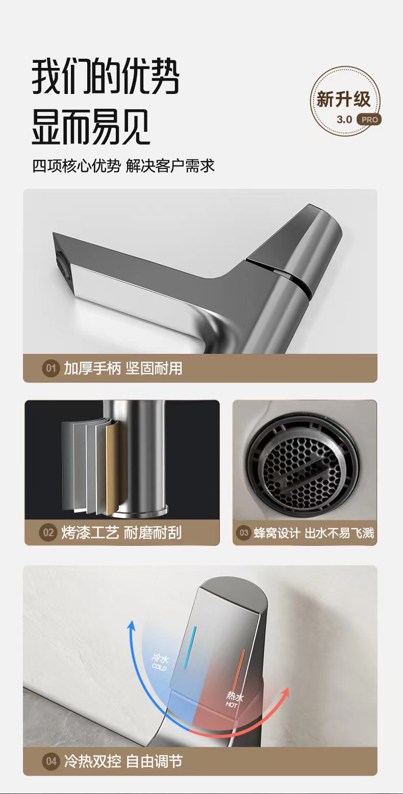 新型水龙头家用冷热洗手池卫生间全铜浴室洗漱台面盆龙头枪灰色 English | 投诉
