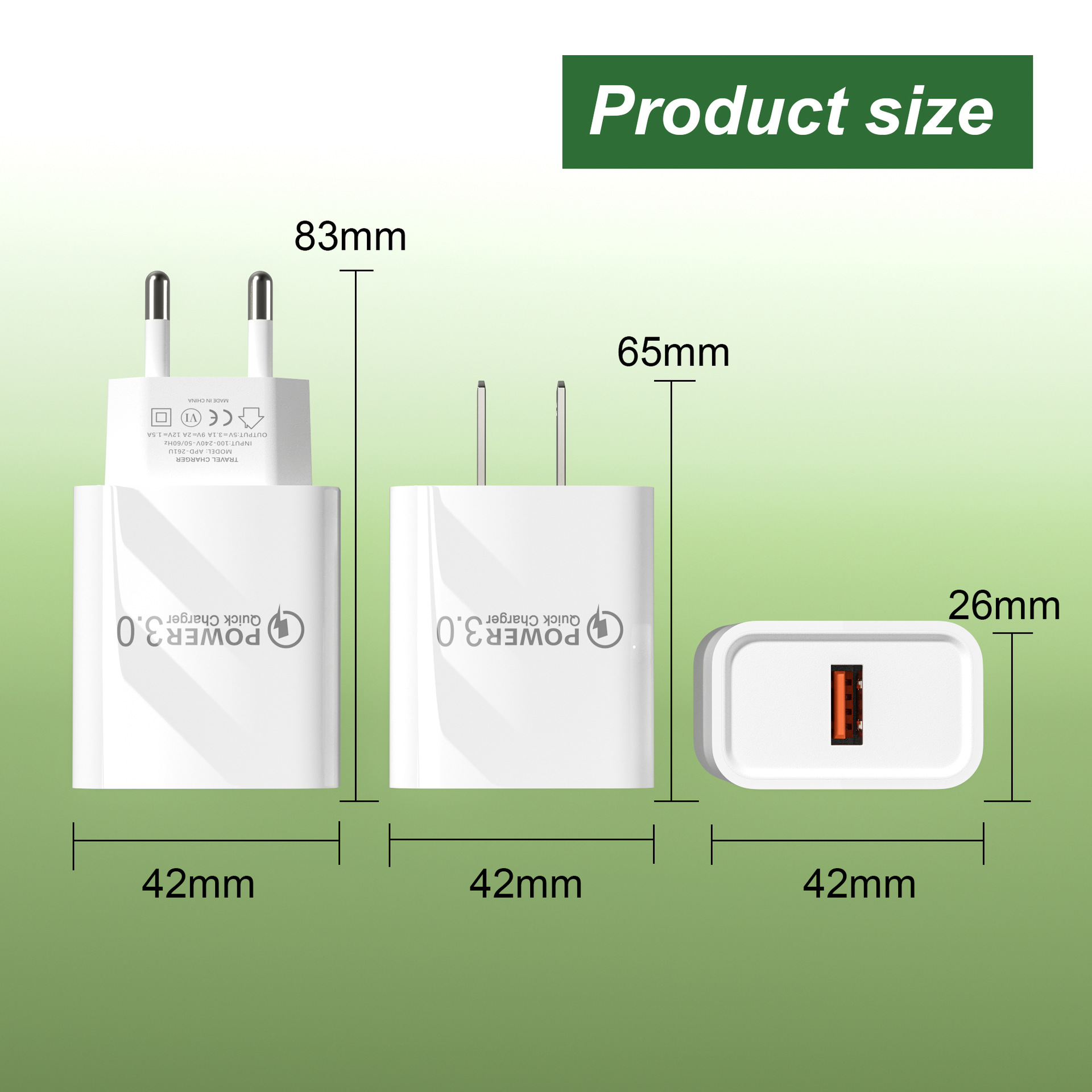 高光1USB手机充电器 5V2A电源适配器 QC3.0快充壁式充电头 欧美规