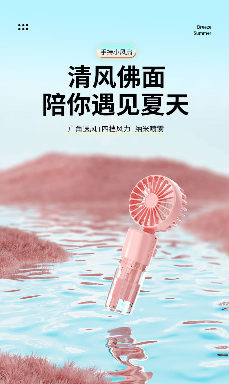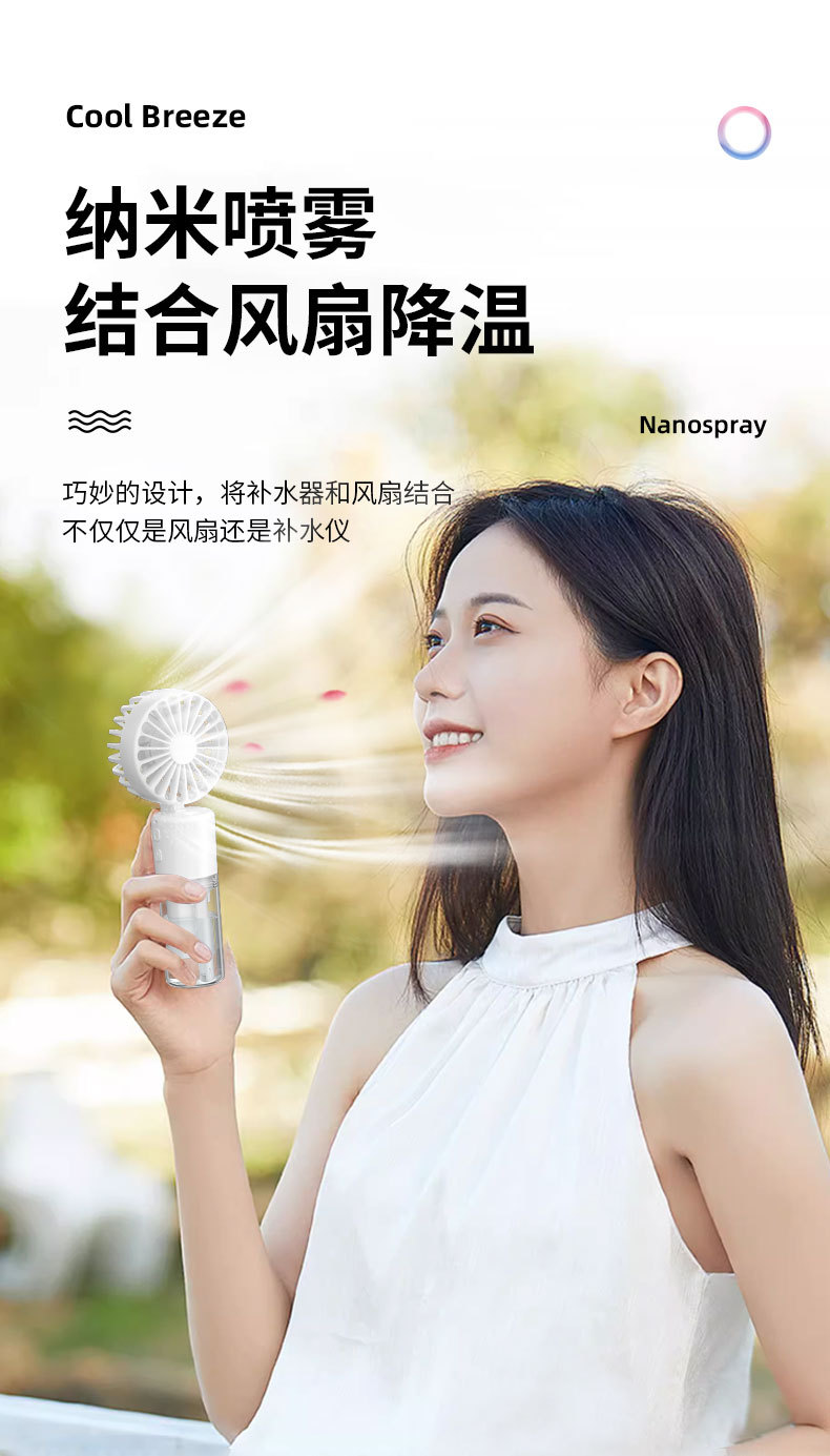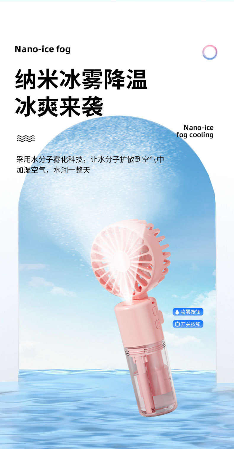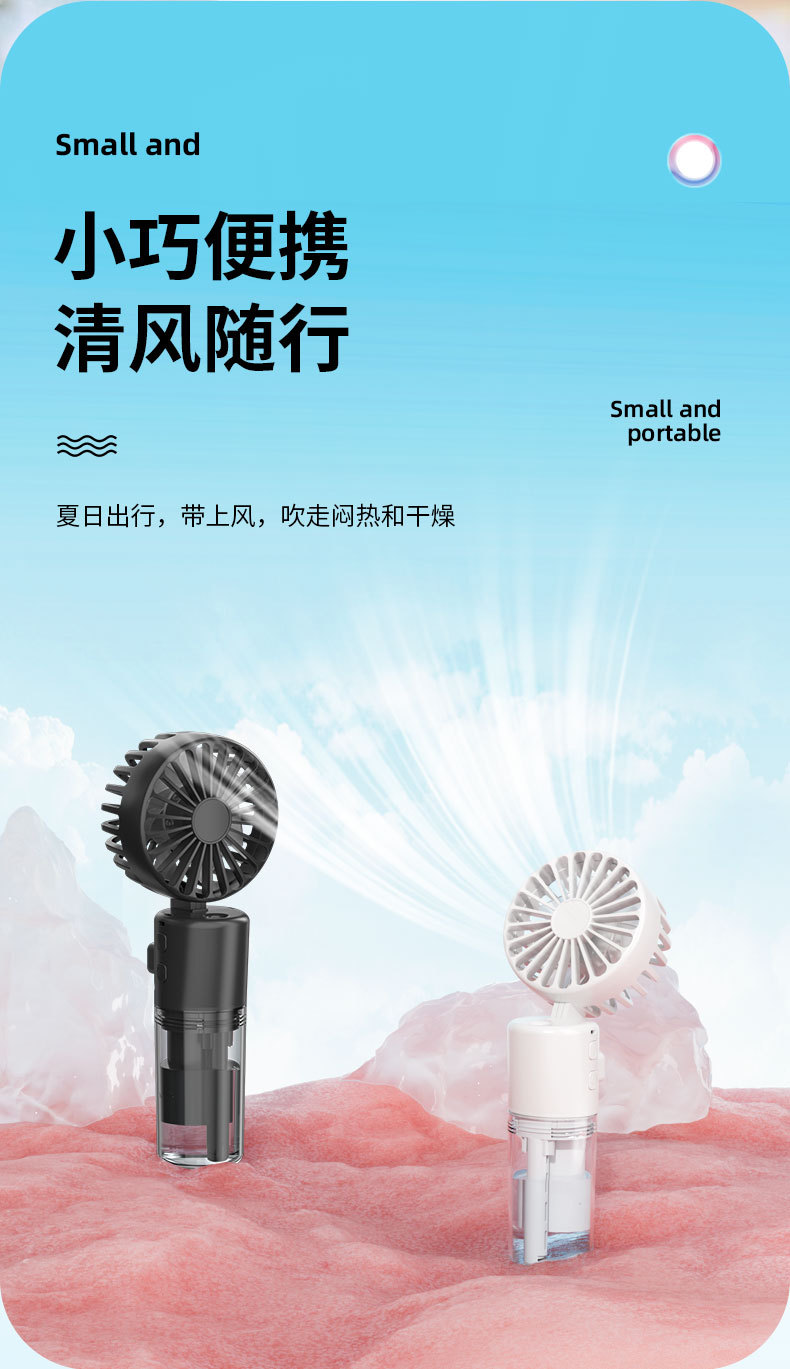 新款手持喷雾风扇便携式迷你充电手持风扇喷雾加湿礼品手持小风扇