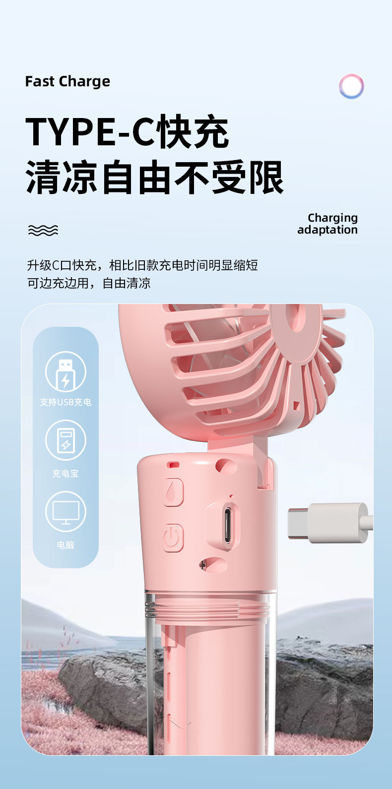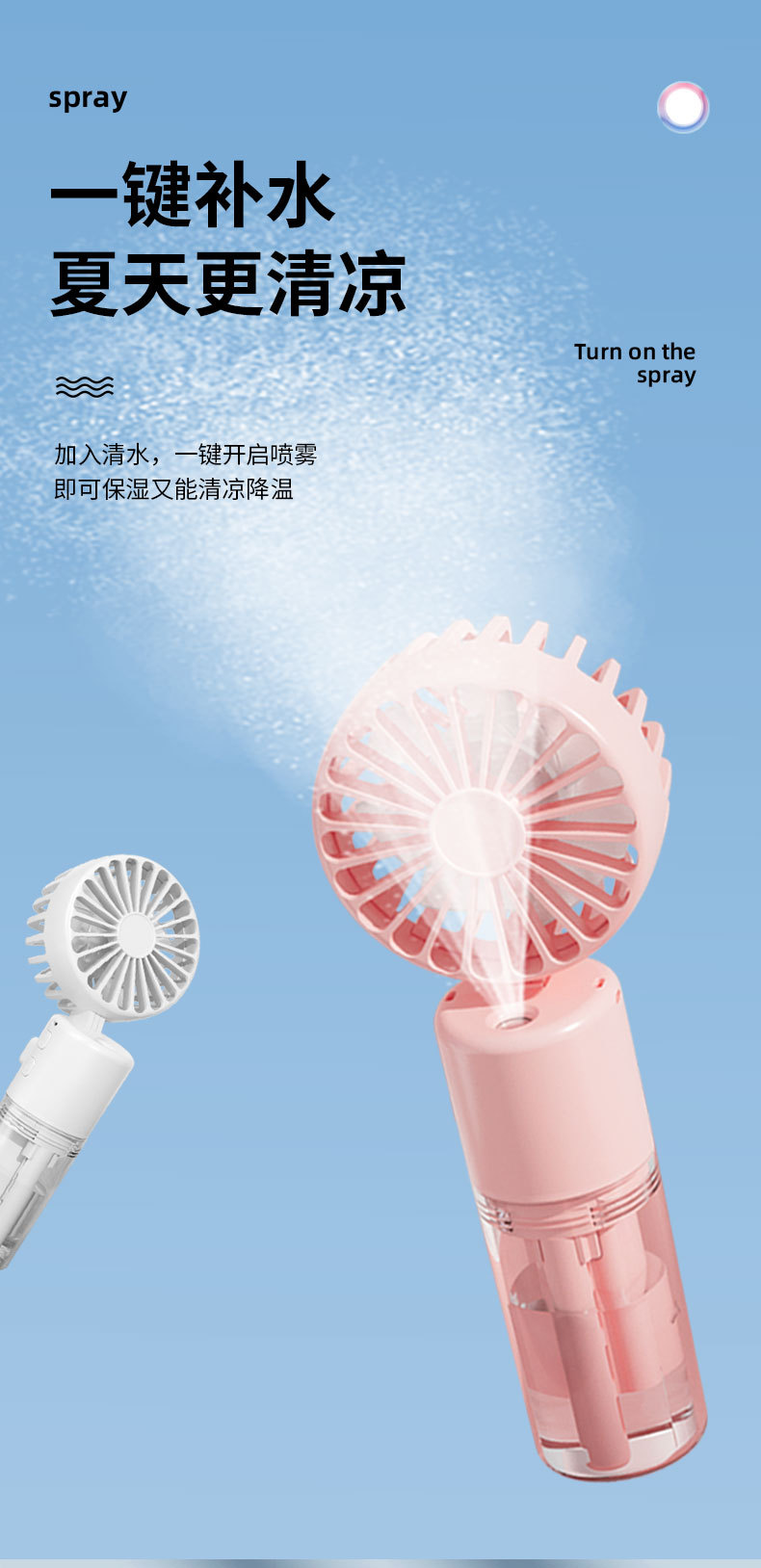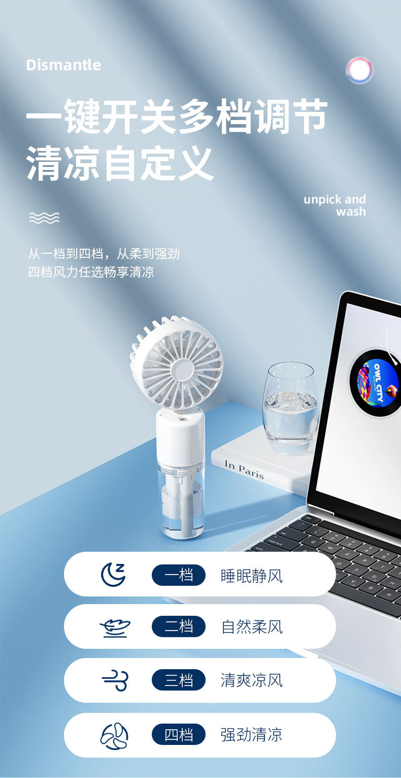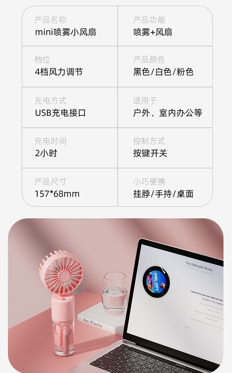新款手持喷雾风扇便携式迷你充电手持风扇喷雾加湿礼品手持小风扇