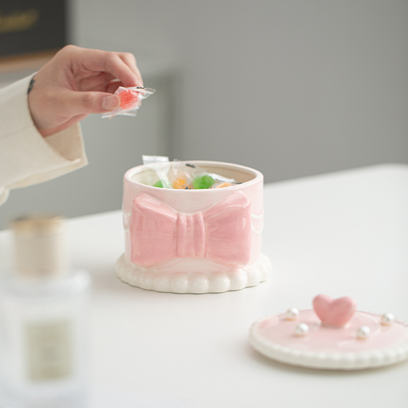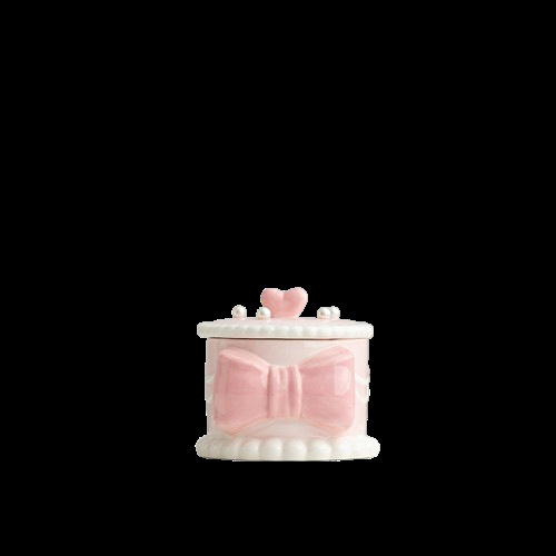 ins珍珠蝴蝶结蛋糕收纳盒陶瓷釉下彩少女心桌面首饰盒可爱储物罐