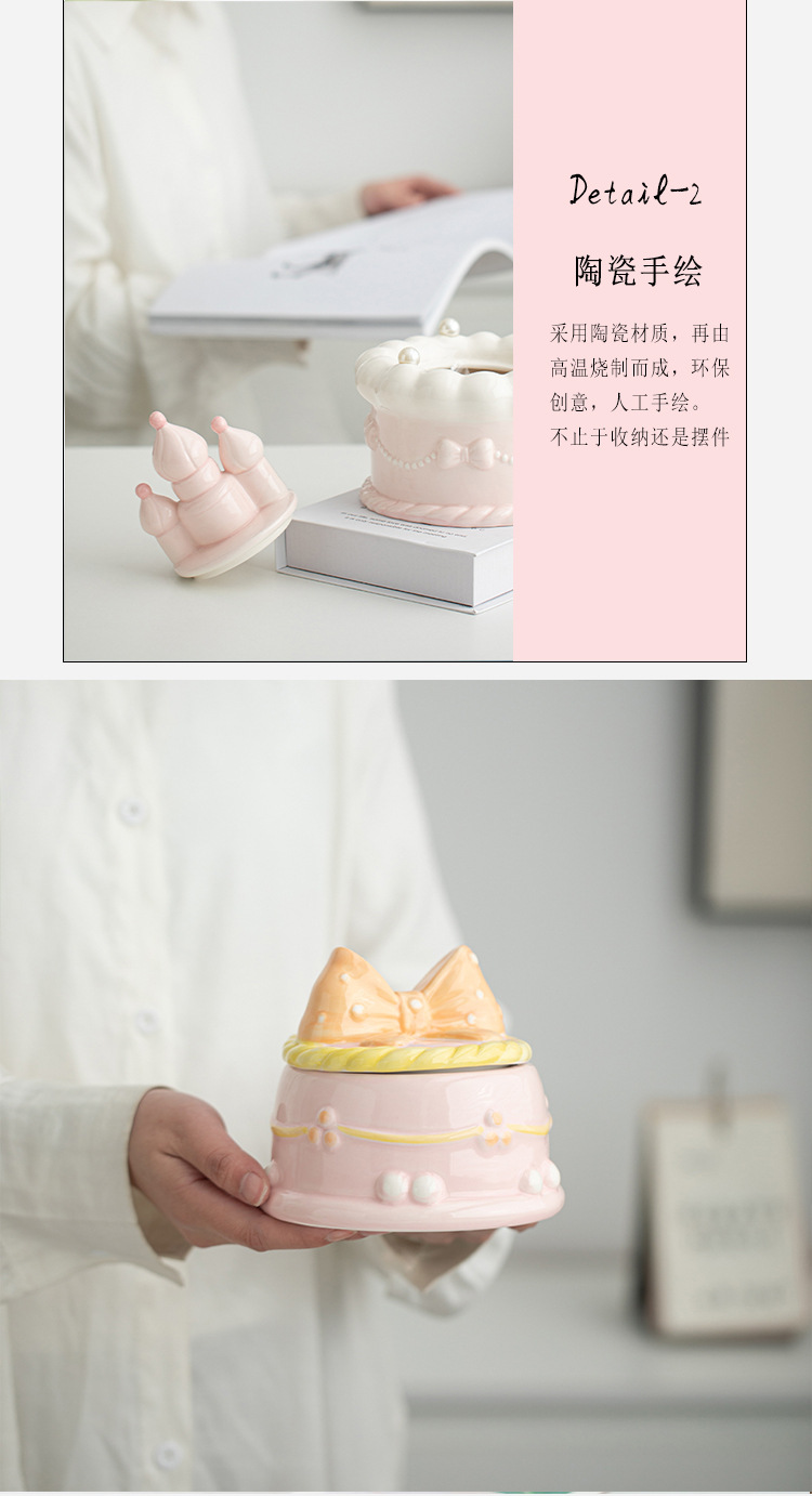 ins珍珠蝴蝶结蛋糕收纳盒陶瓷釉下彩少女心桌面首饰盒可爱储物罐 投诉
