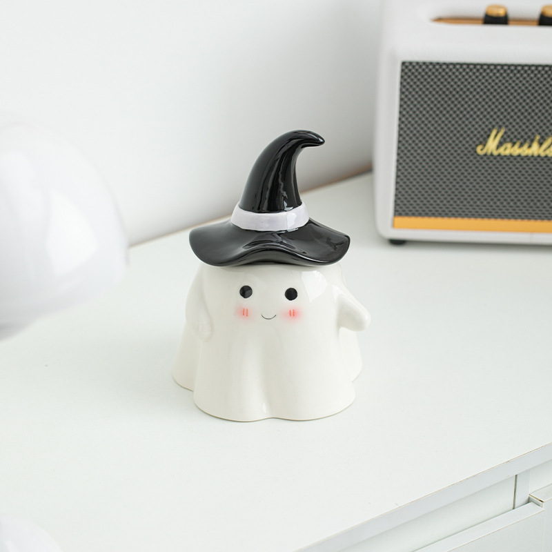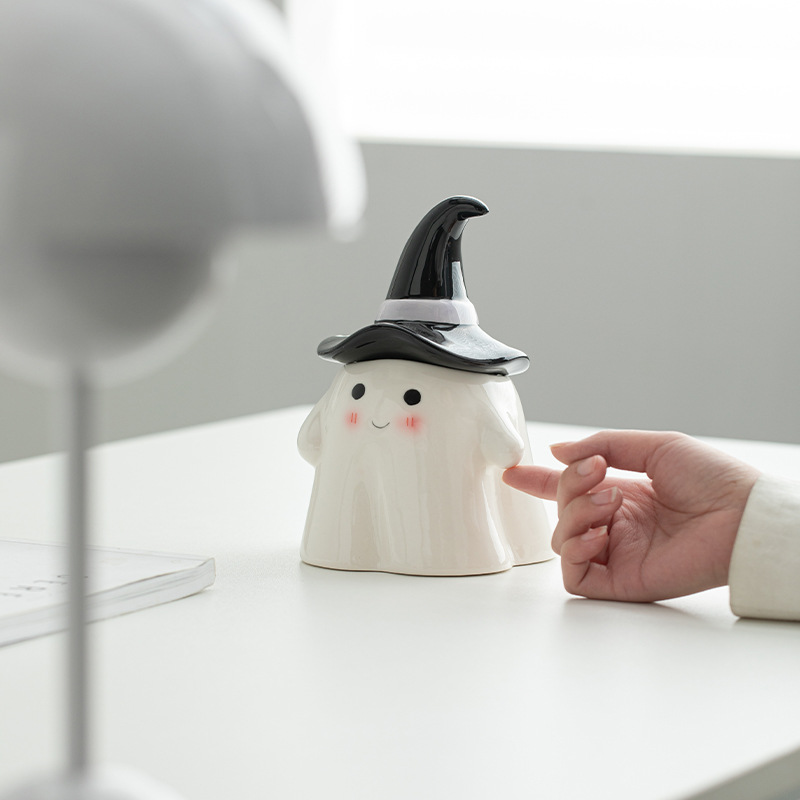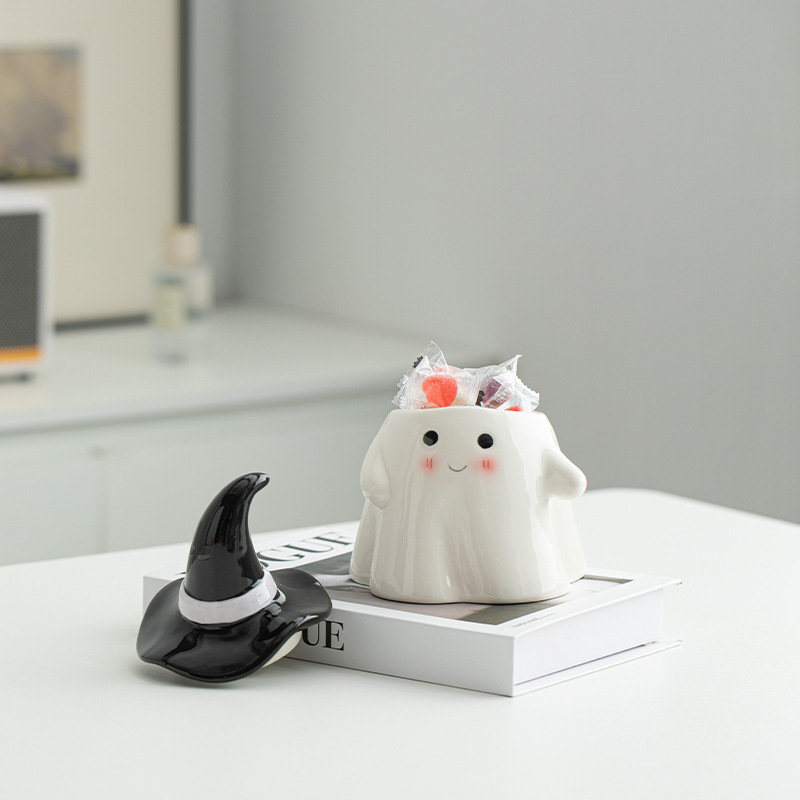 万圣小幽灵陶瓷糖果罐可爱卡通储物罐客厅家居收纳摆件少女心带盖