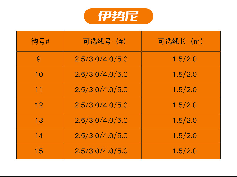 | 伊势尼12#有刺 子线2.5# | ¥0 | 9999个可售 |
