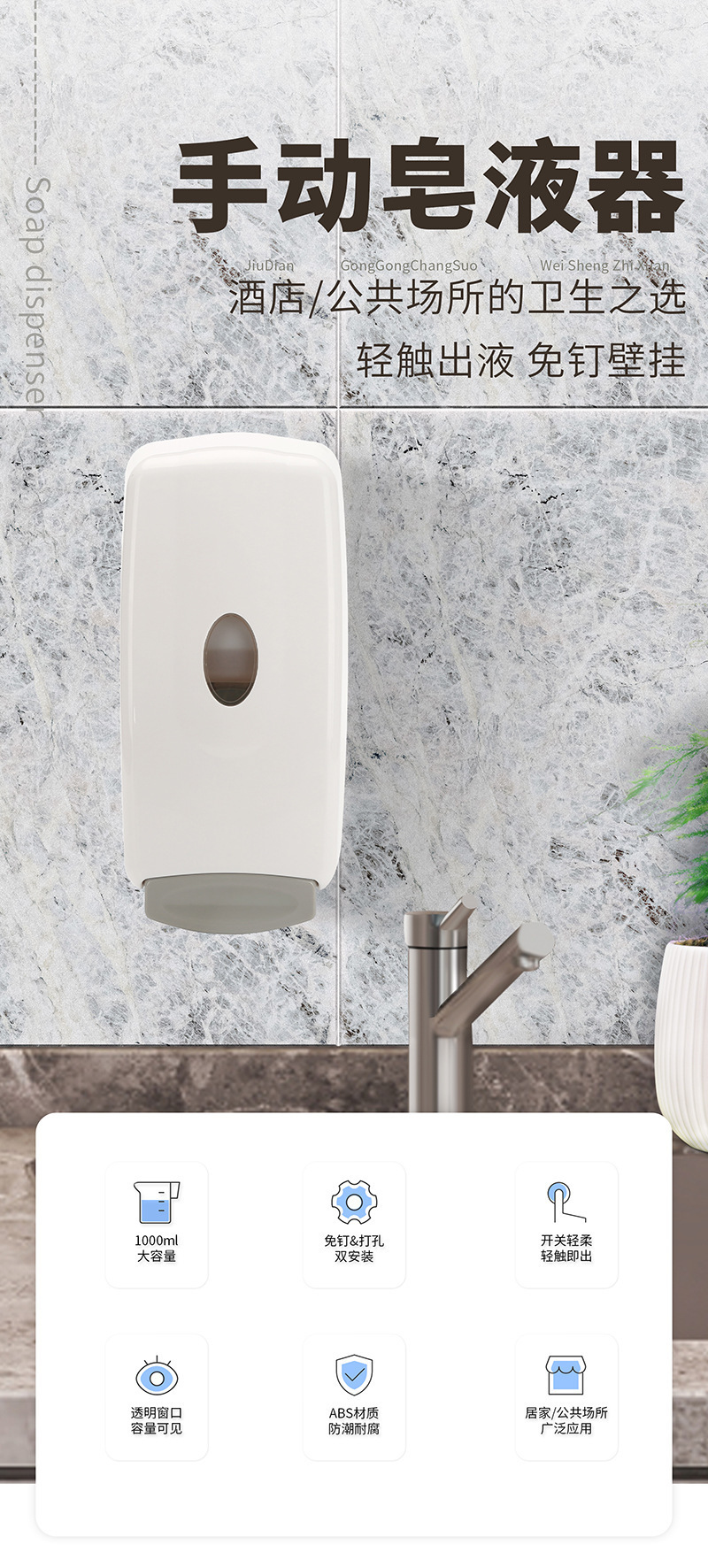 壁挂式手压消毒洗手液机 手动皂液器泡沫洗手机洗手间按压皂液机 English | 投诉