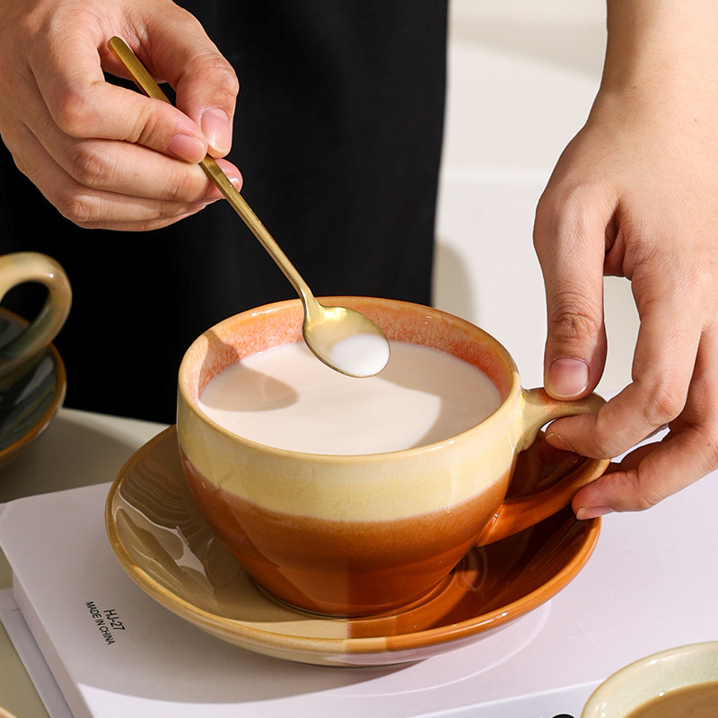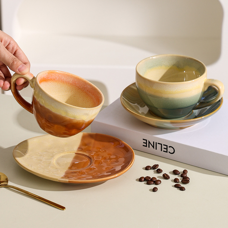 个性陶瓷饮水杯碟子组合马克杯窑变色下午茶咖啡杯办公室轻奢茶杯 English | 投诉