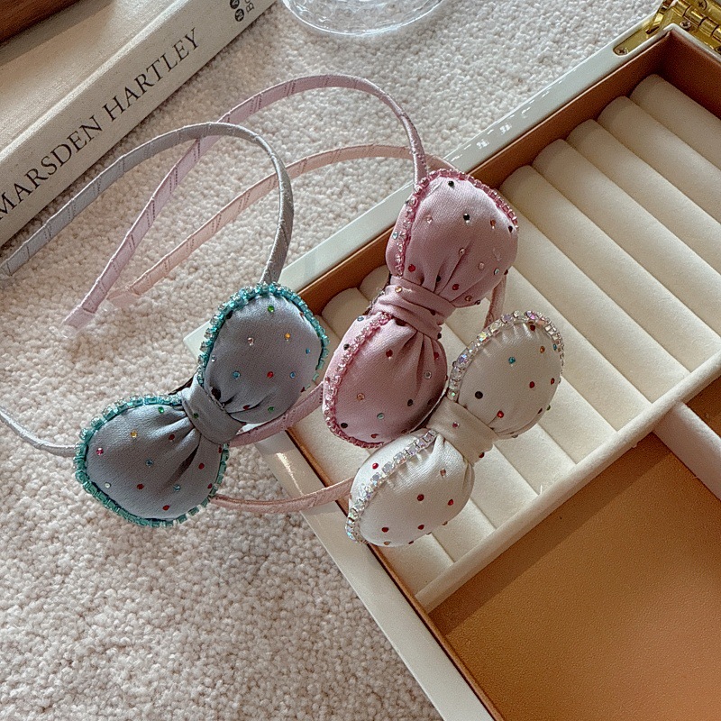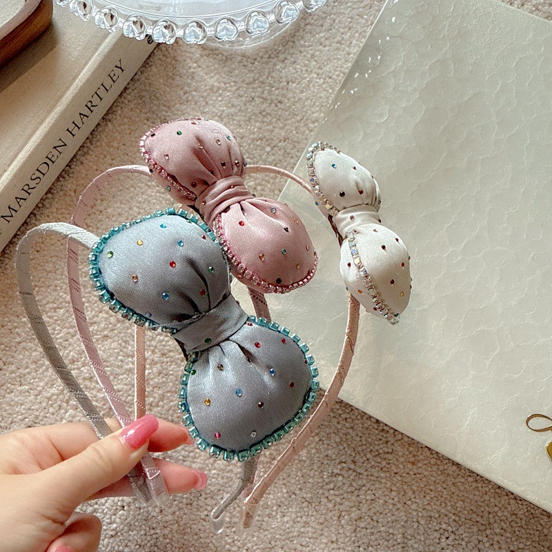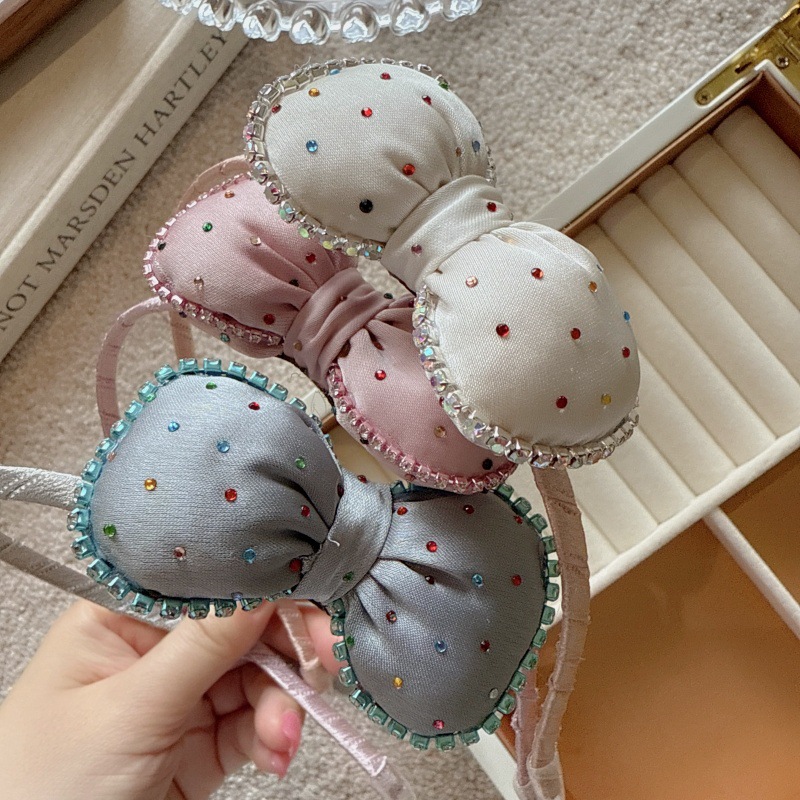 韩国发箍儿童新款布艺彩色水钻蝴蝶结宝宝发卡不勒头女童头箍发饰