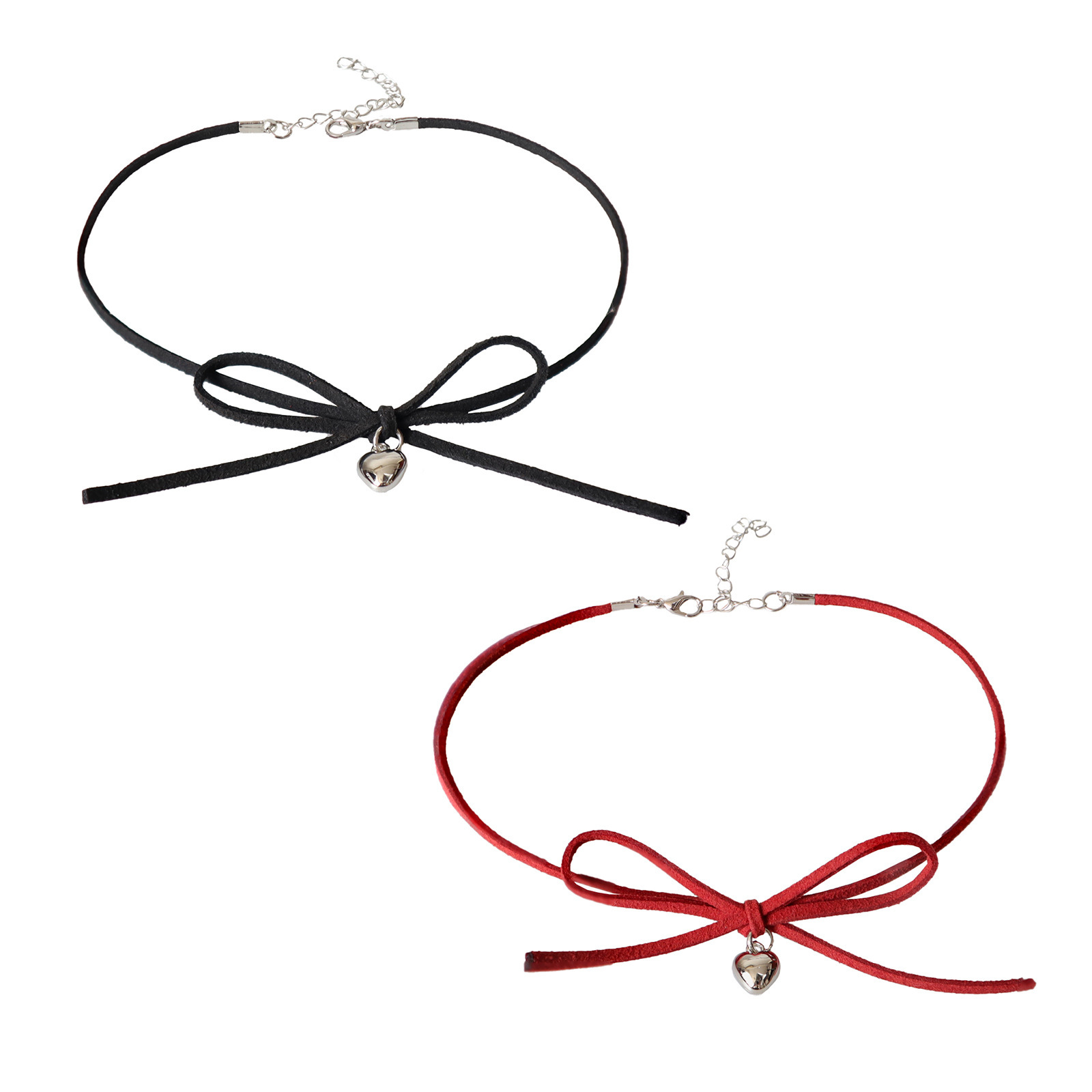 甜酷girl饰品蝴蝶结银色小爱心项链纯欲风锁骨链choker项圈颈链