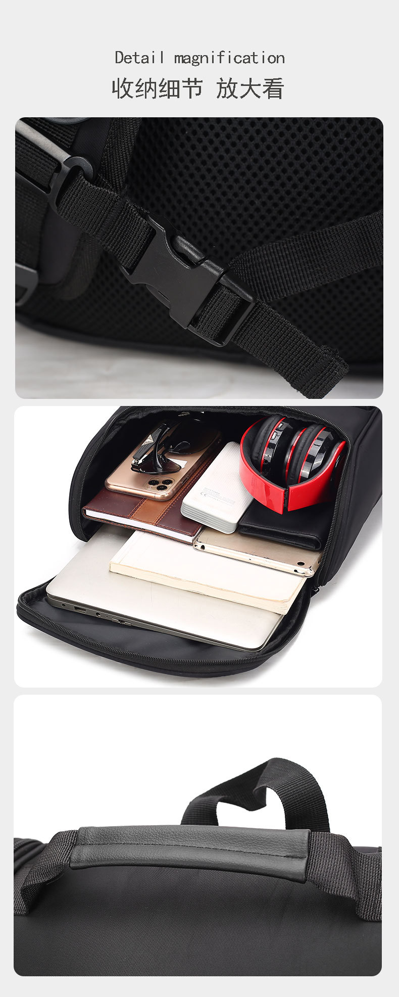 适用性别: 中性/男女均可 适用场景: 休闲旅行 材质: 尼龙 风格: 都市简约 品牌: ruishisen 容量: 20-35L 功能: 其他 容纳电脑尺寸: 13英寸 上市年份季节: 2023年冬季 货号: 定制-RSS-2426 重量: 0.71 kg/个