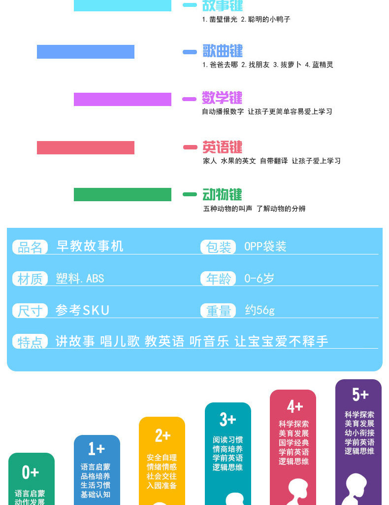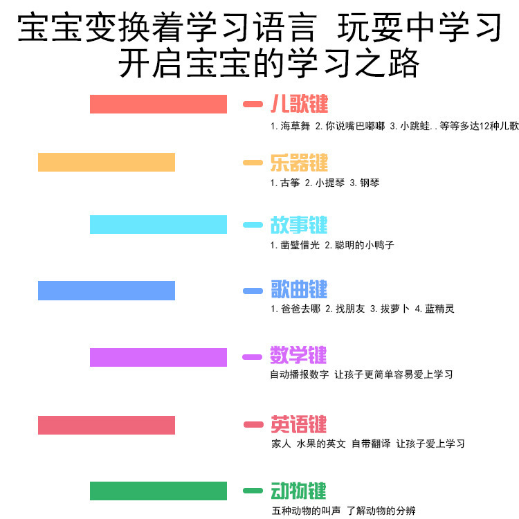 类别: 学习机/学习电脑 功能: 电动,闪光,音乐/发声 材质: 塑料/塑胶 内存容量: 无内存 规格: 见SKU 品牌: 淘喜爱 供电方式: 普通干电池 包装方式: 袋装 彩盒 货号: SW-458A 是否有动漫形象: 否 重量: 1.0 kg/台