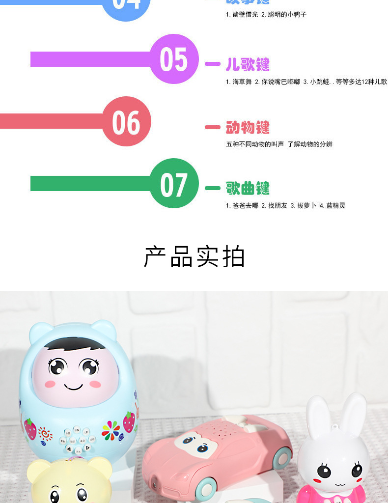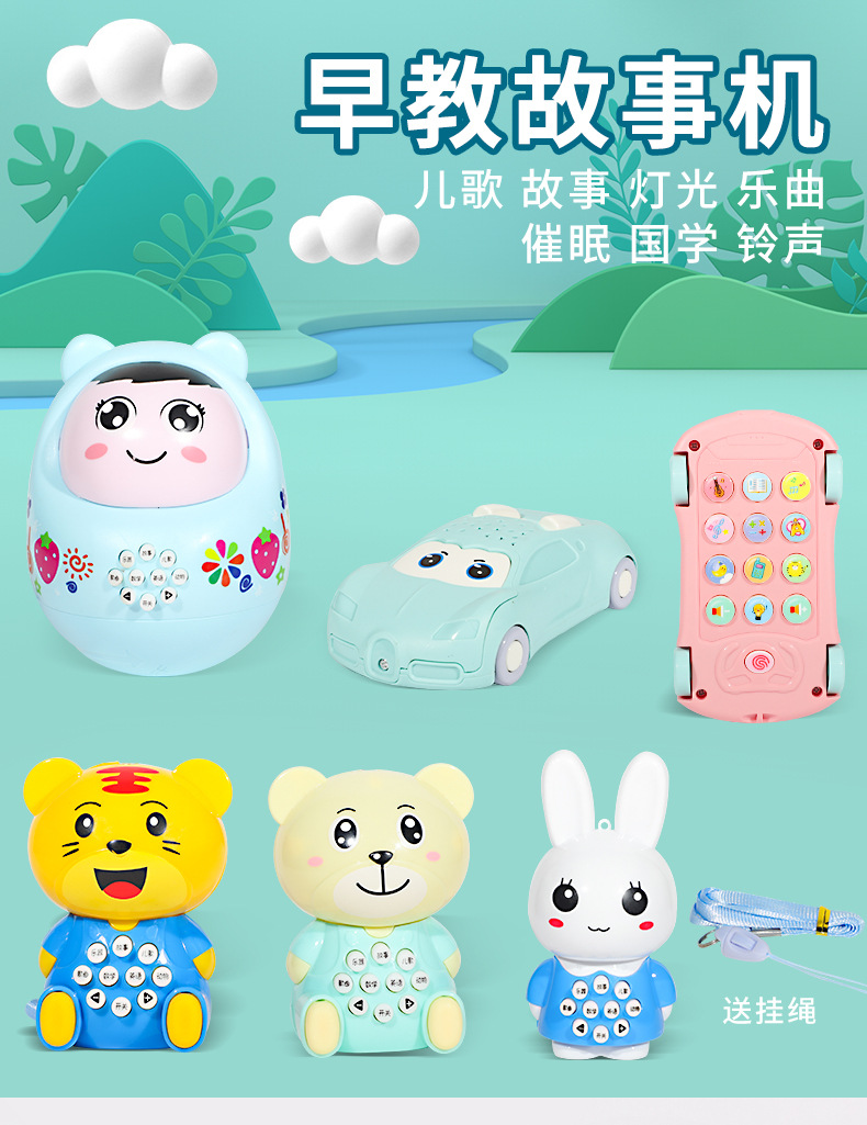 地摊批发宝宝故事机不倒翁幼儿启蒙多功能音乐灯光兔子早教机玩具 投诉