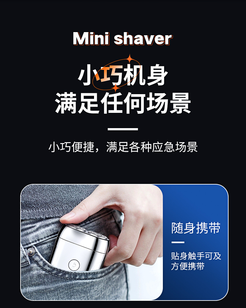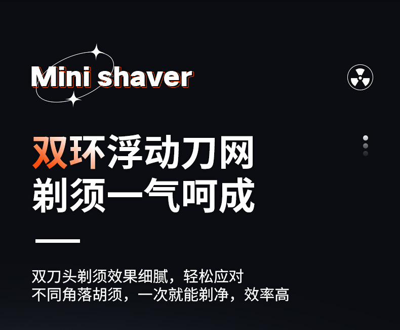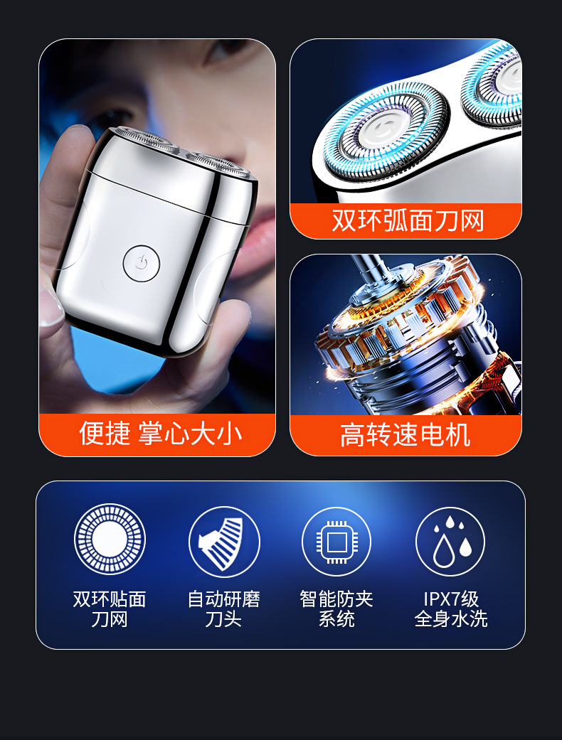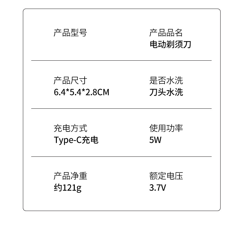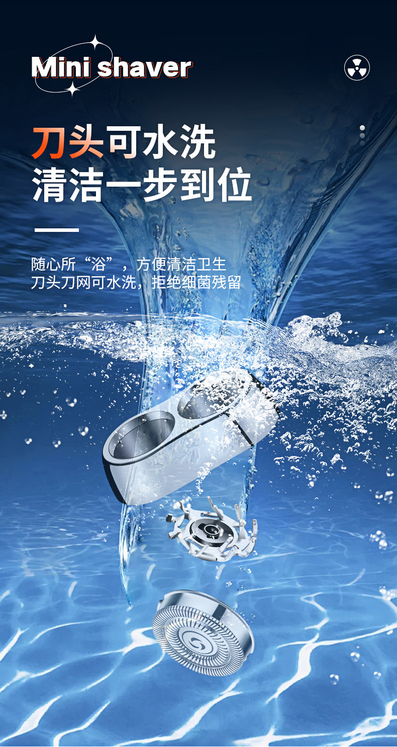 5. 往复式刀头,剃须剃头两用。