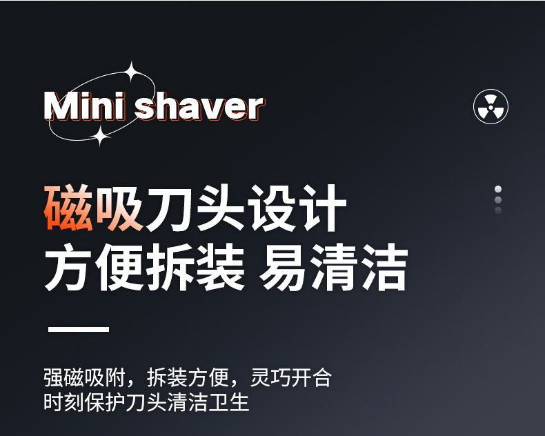 2. 吸磁式保护盖,卡扣式刀头拆卸方便,无需安装,清洗方便。