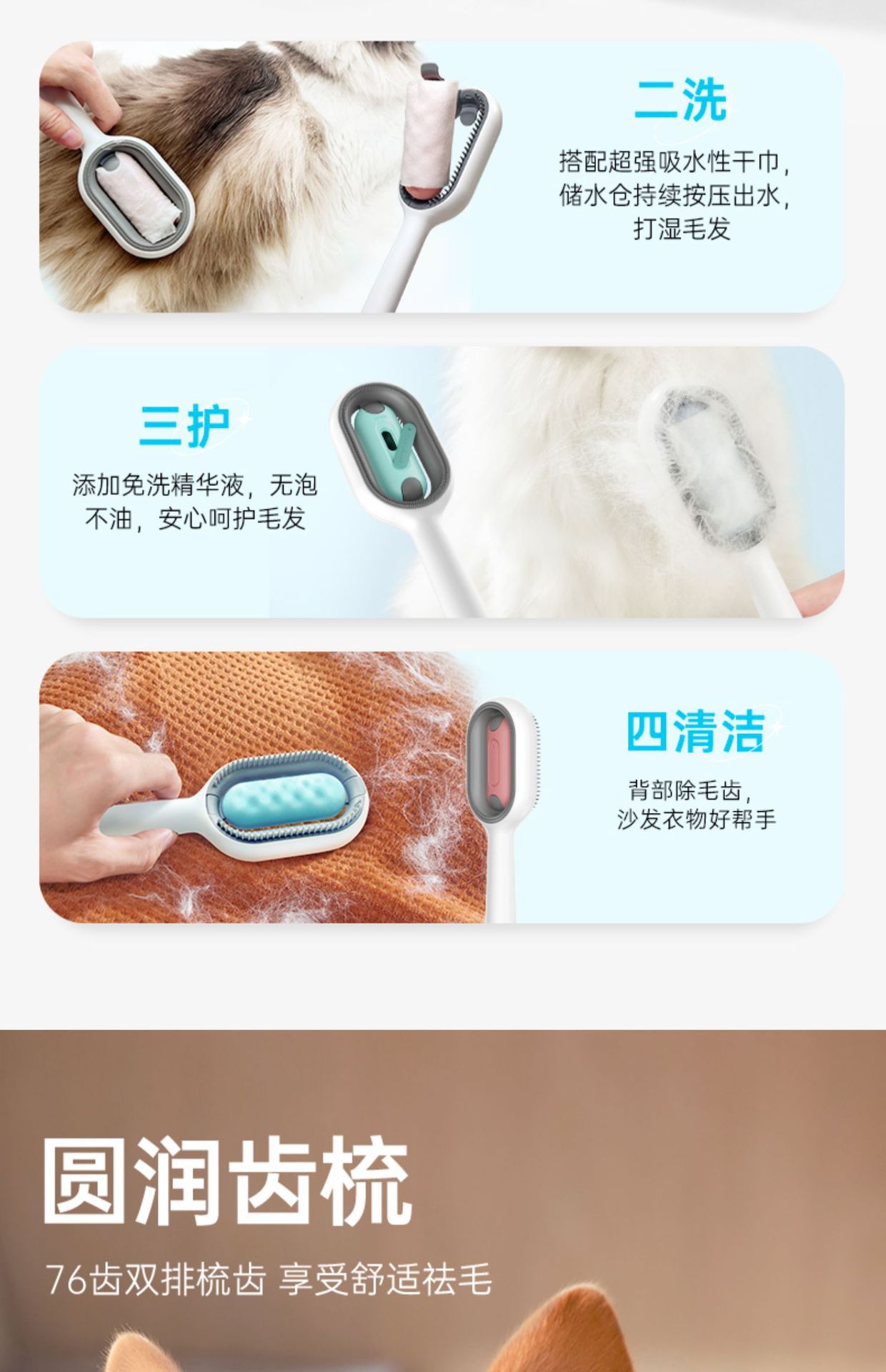 宠物引力猫梳子猫梳毛专用狗狗梳毛刷清理去浮毛神器可粘毛祛毛梳 投诉