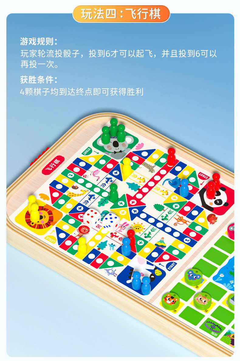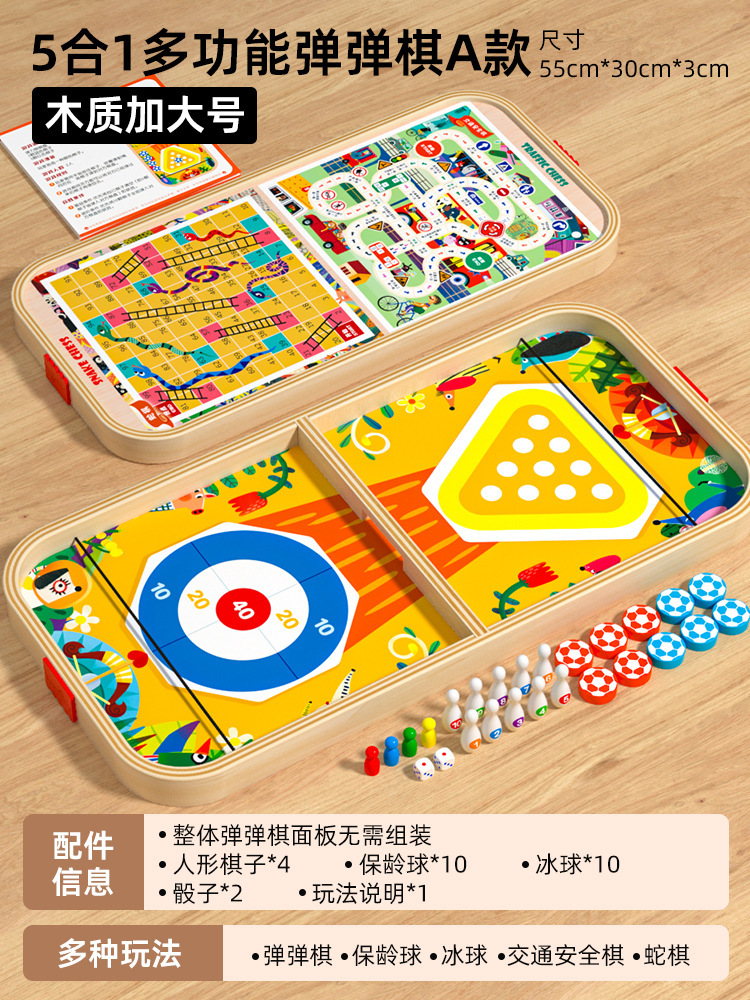 木制多功能双面桌面游戏棋趣味弹弹棋飞行棋亲子互动儿童益智玩具