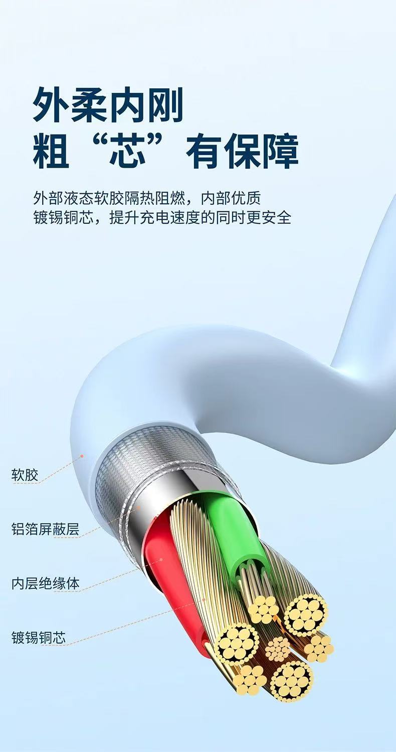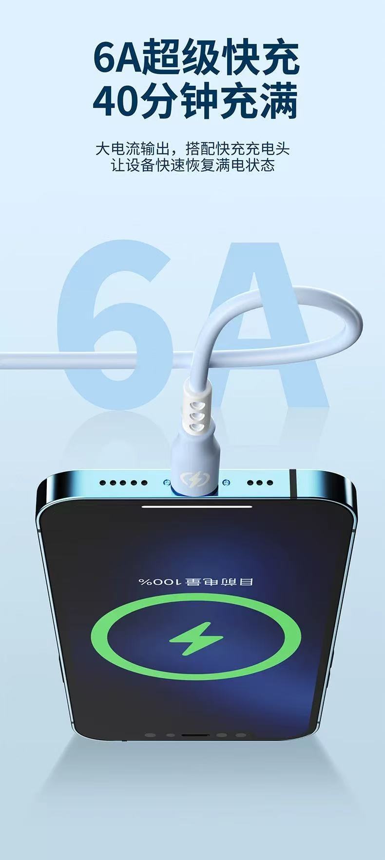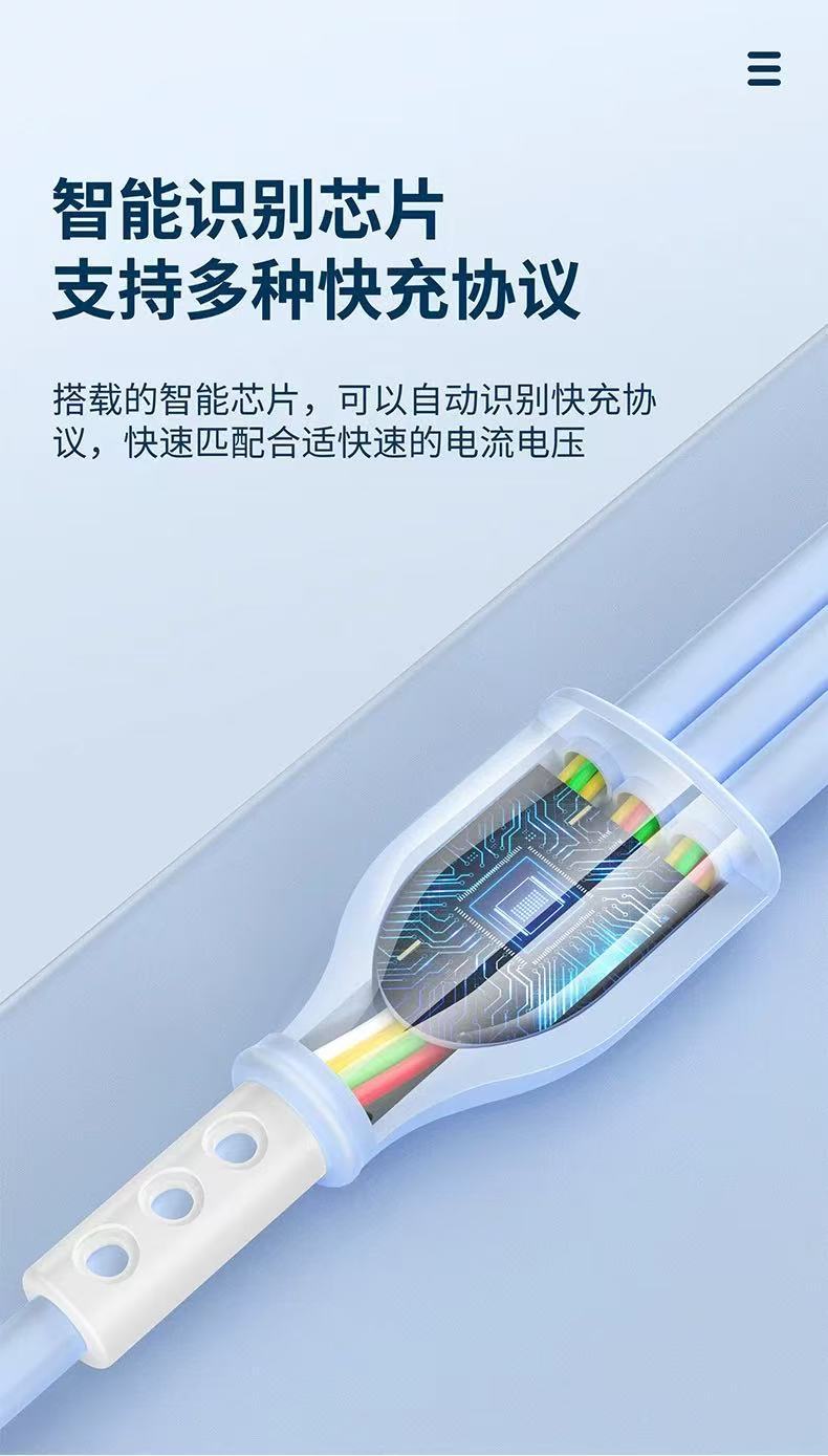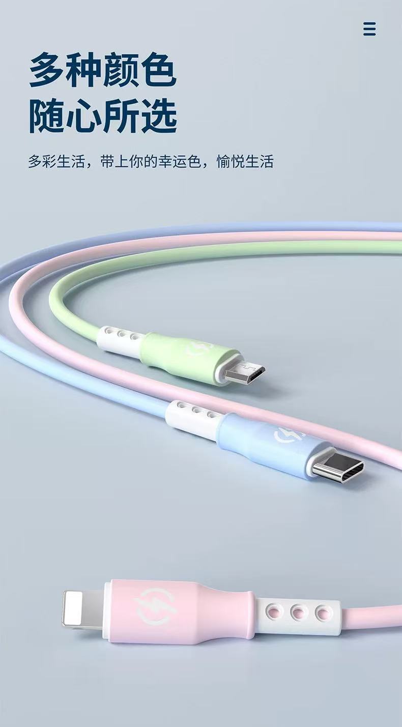 新款跨境6A超级快充一拖三数据线液态硅胶三合一快充充电线现货 投诉