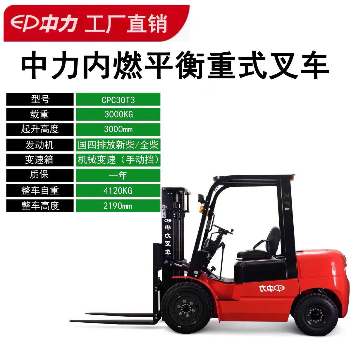 板材厚度: 4 品牌: 中力 脚轮材质: 橡胶 自重: 4120 轮胎规格: 标准配置 最高行驶速度: 20 脚轮数量: 4 钢板厚度: 3 特种设备制造许可证号: TS2510382-2027 行走方式: 内燃式叉车 重量: 0.5 kg/台