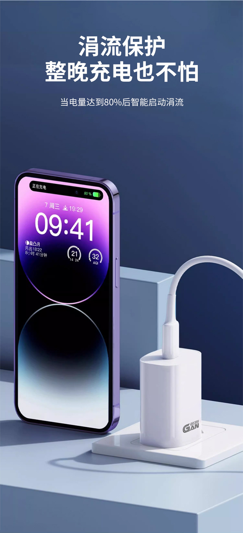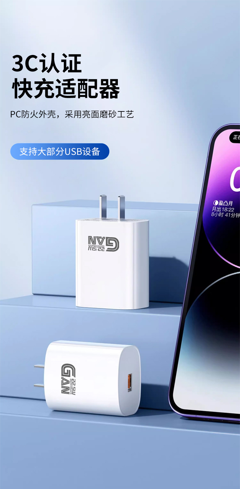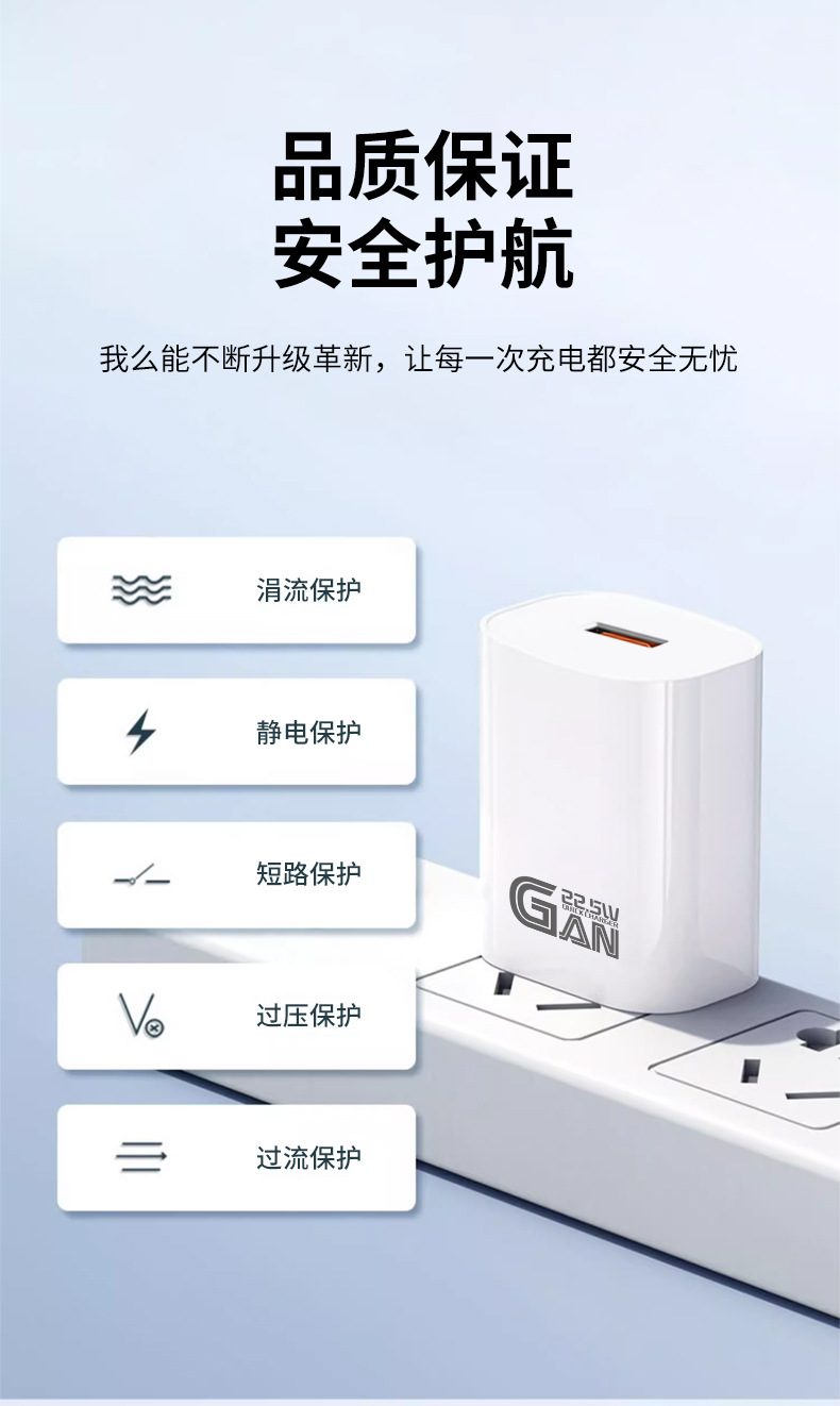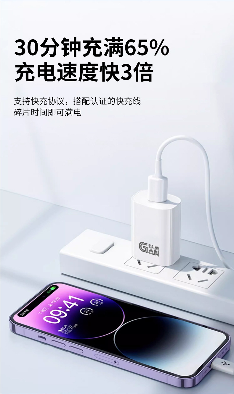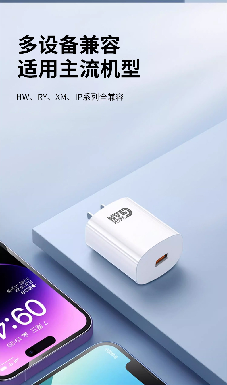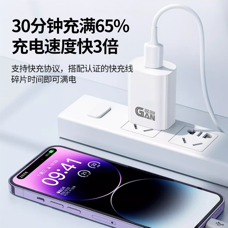 氮化镓22.5W适用华为闪充手机充电器3A超极快充USB口QC3.0充电头