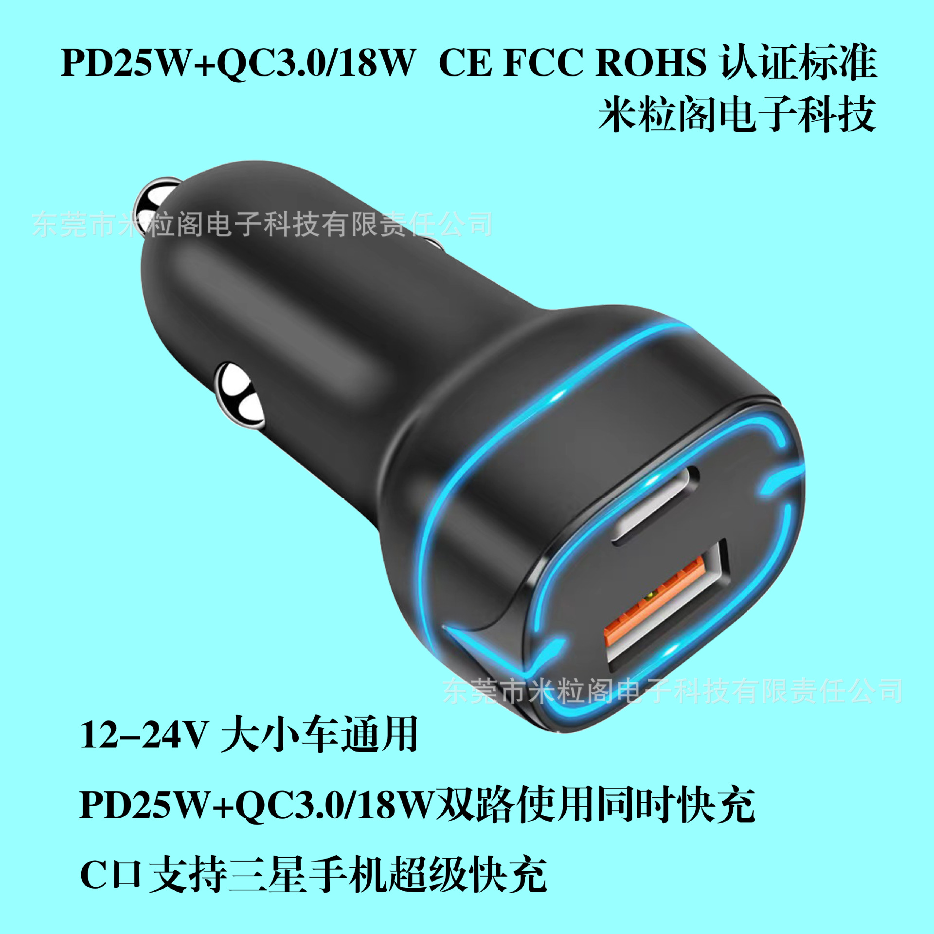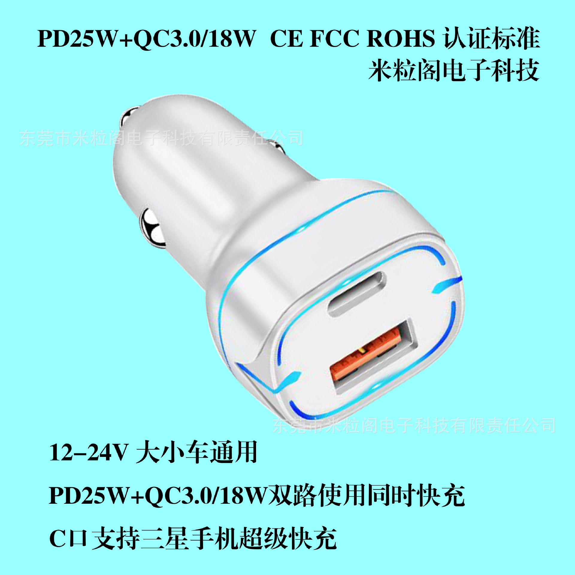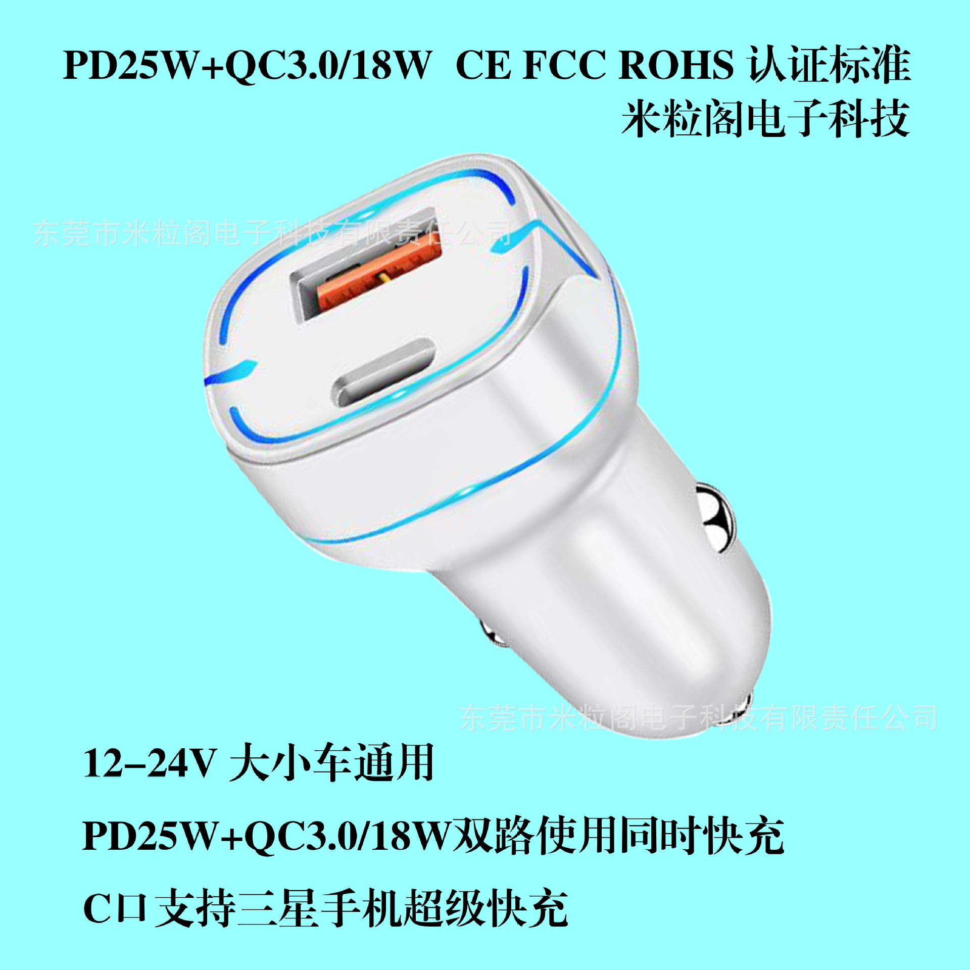 跨境pd25W新款车载快充充电器pd25w+qc3.0C CE ROHS FCC认证标准