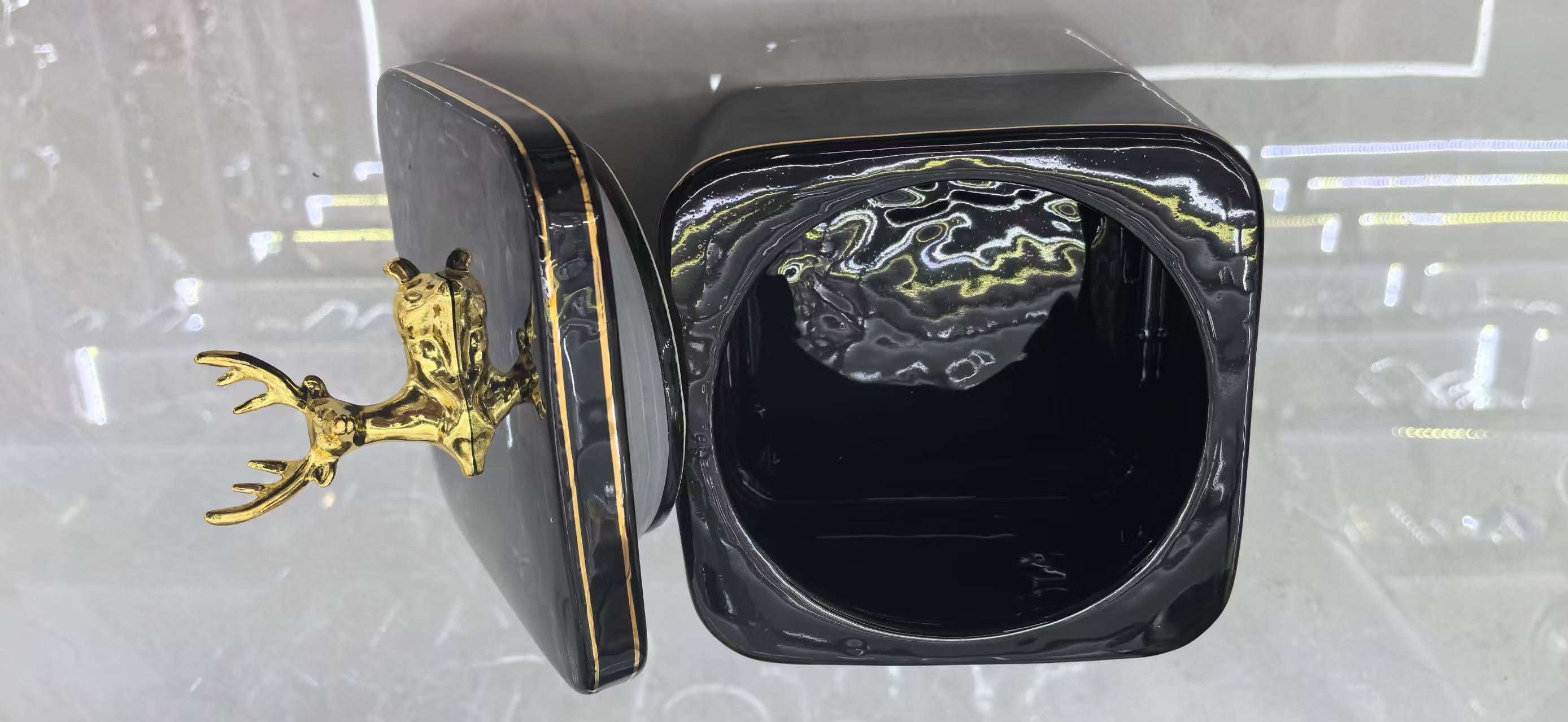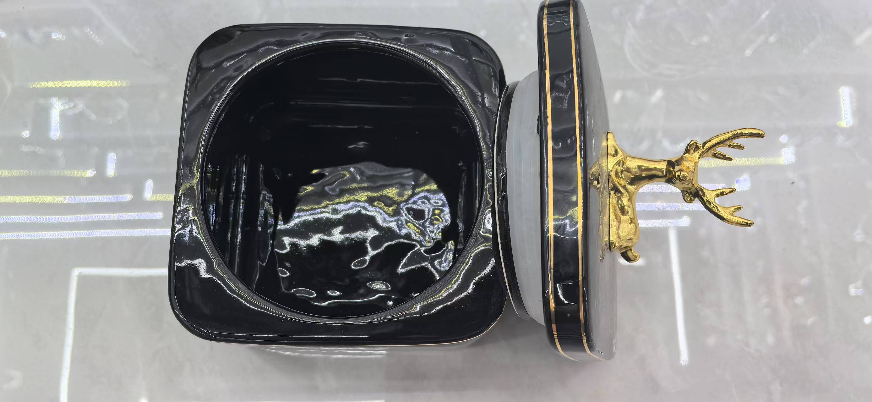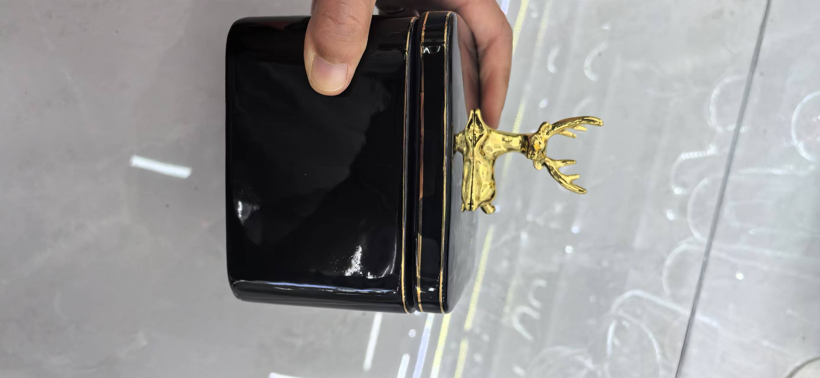 金边描边方形小鹿陶瓷密封罐创意厨房储物罐食品茶叶收纳罐