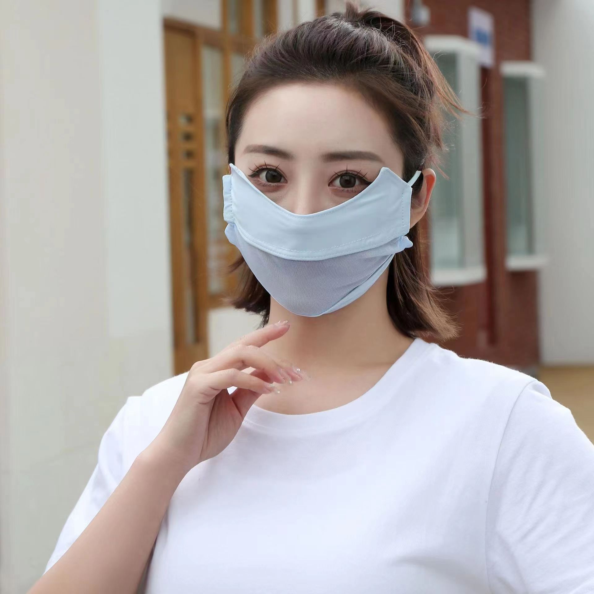 夏季防晒口罩女护眼角透气防紫外线薄纱户外锦纶骑行网纱冰丝面罩