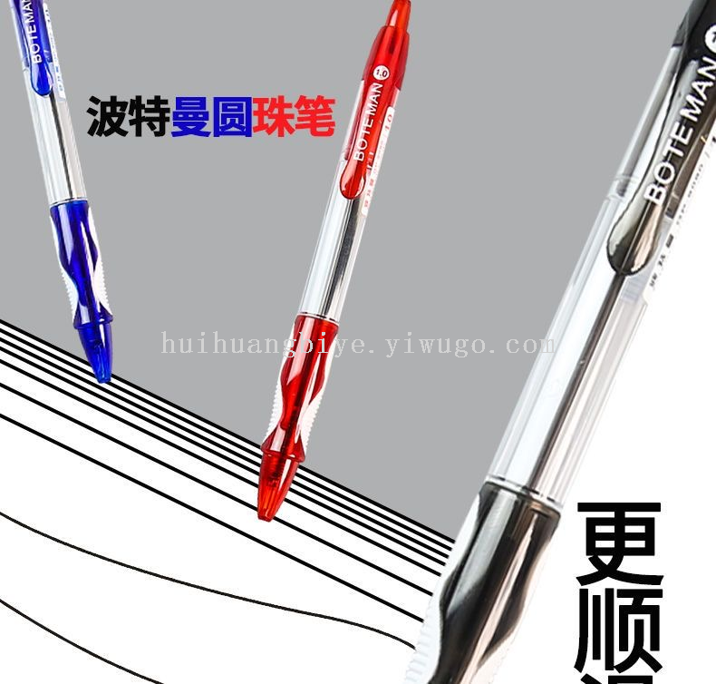 波特曼1.0mm批发圆珠笔办公蓝色顺滑按动圆珠笔黑商务老式圆珠笔