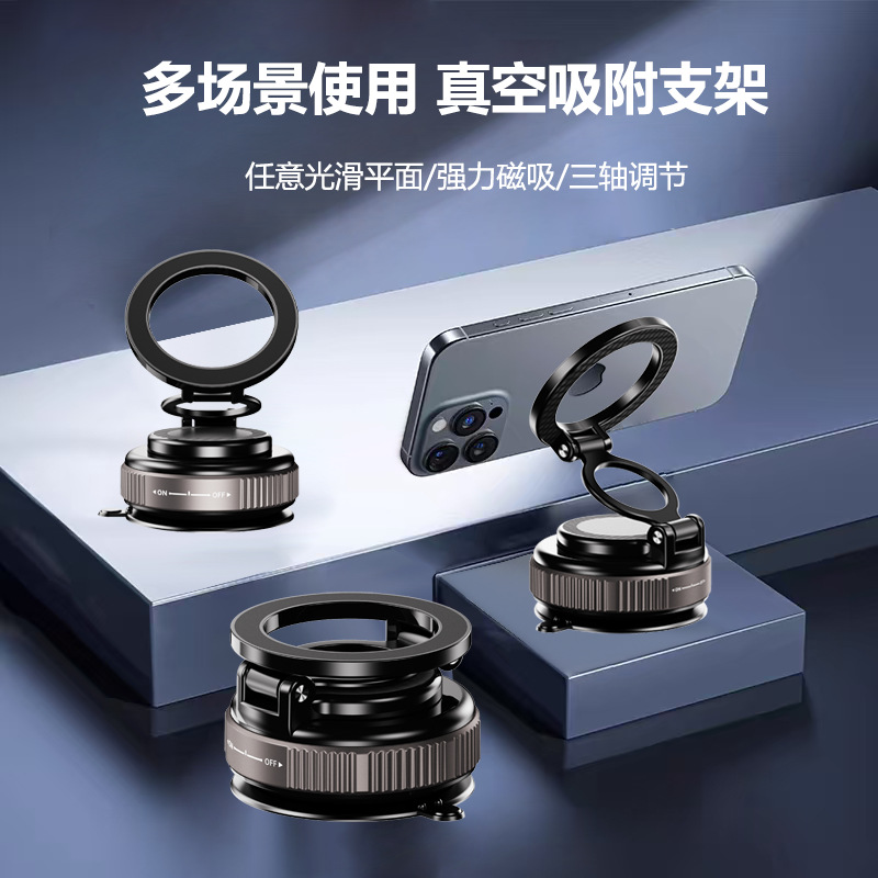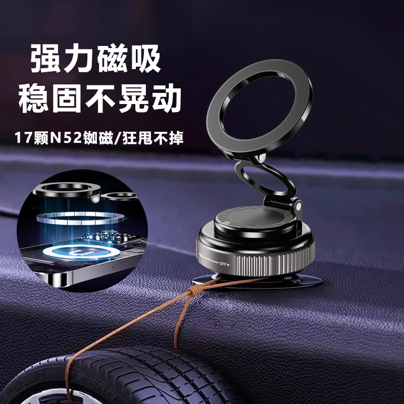 跨境2025新款科技感磁吸车载支架真空吸附车用导航支架磁吸力强