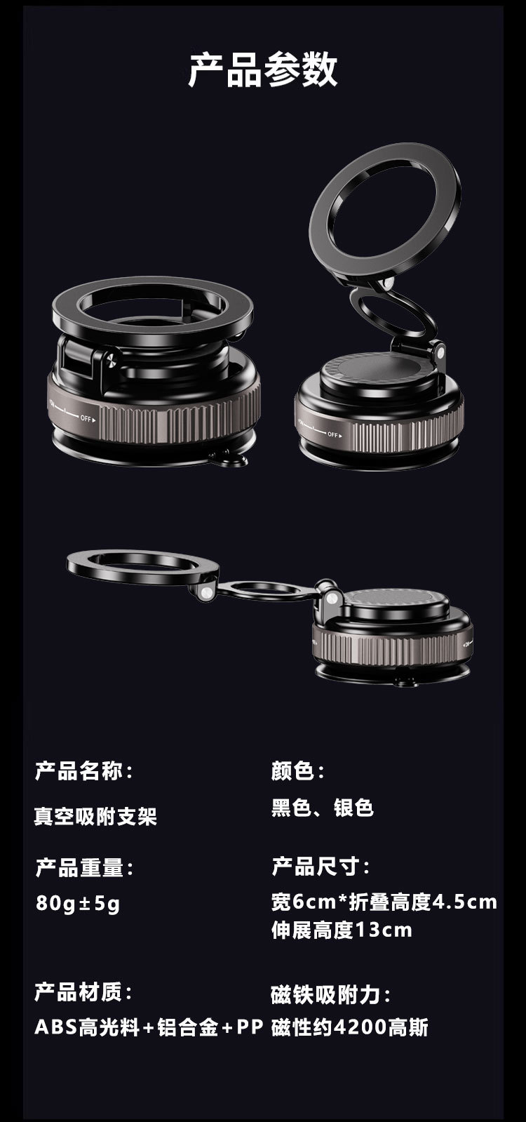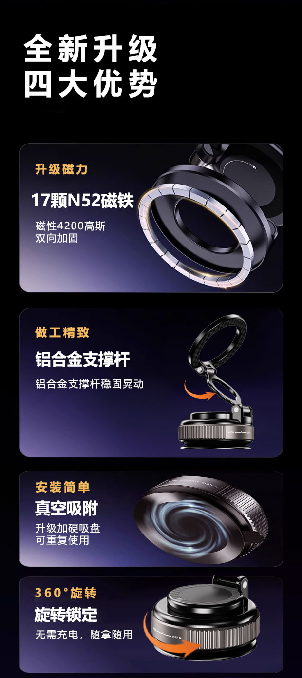 跨境2025新款科技感磁吸车载支架真空吸附车用导航支架磁吸力强 投诉