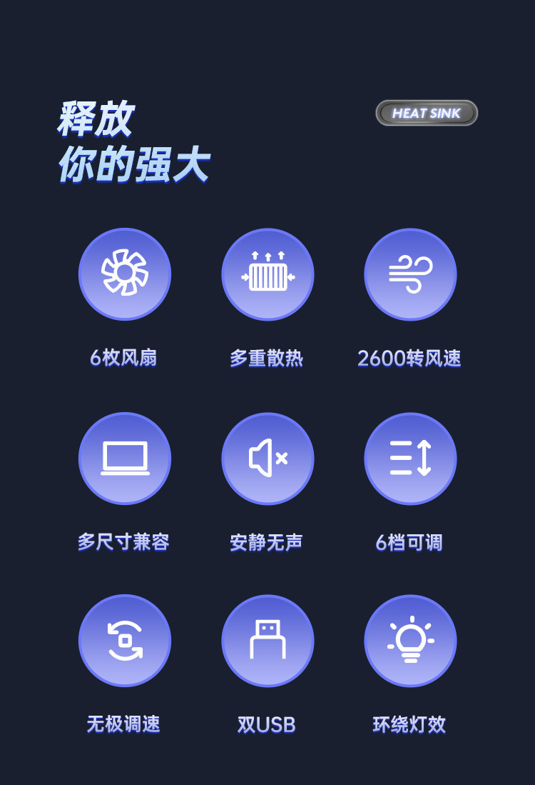 跨境 RGB风冷半导体 6风扇15.6 手提支架F12游戏笔记本电脑散热器