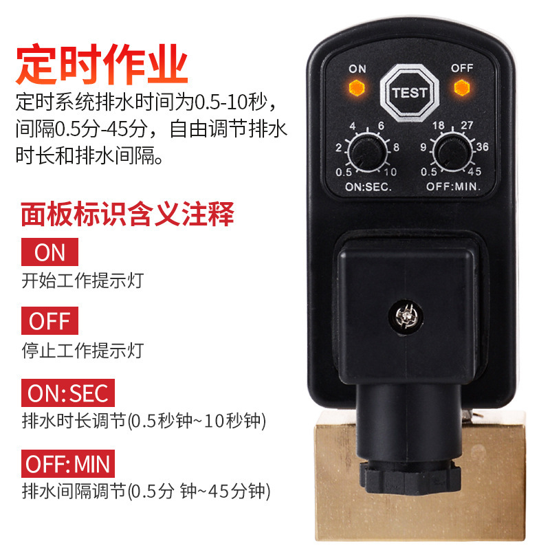 电子排水阀空压机储气罐冷干机RDP-A\-B定时自动放水电磁阀AC220V