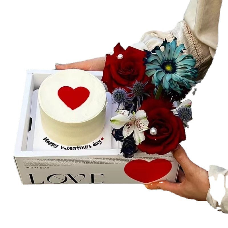现货网红七夕情人节蛋糕鲜花盒手提蛋糕包装盒爱心love情侣表白盒