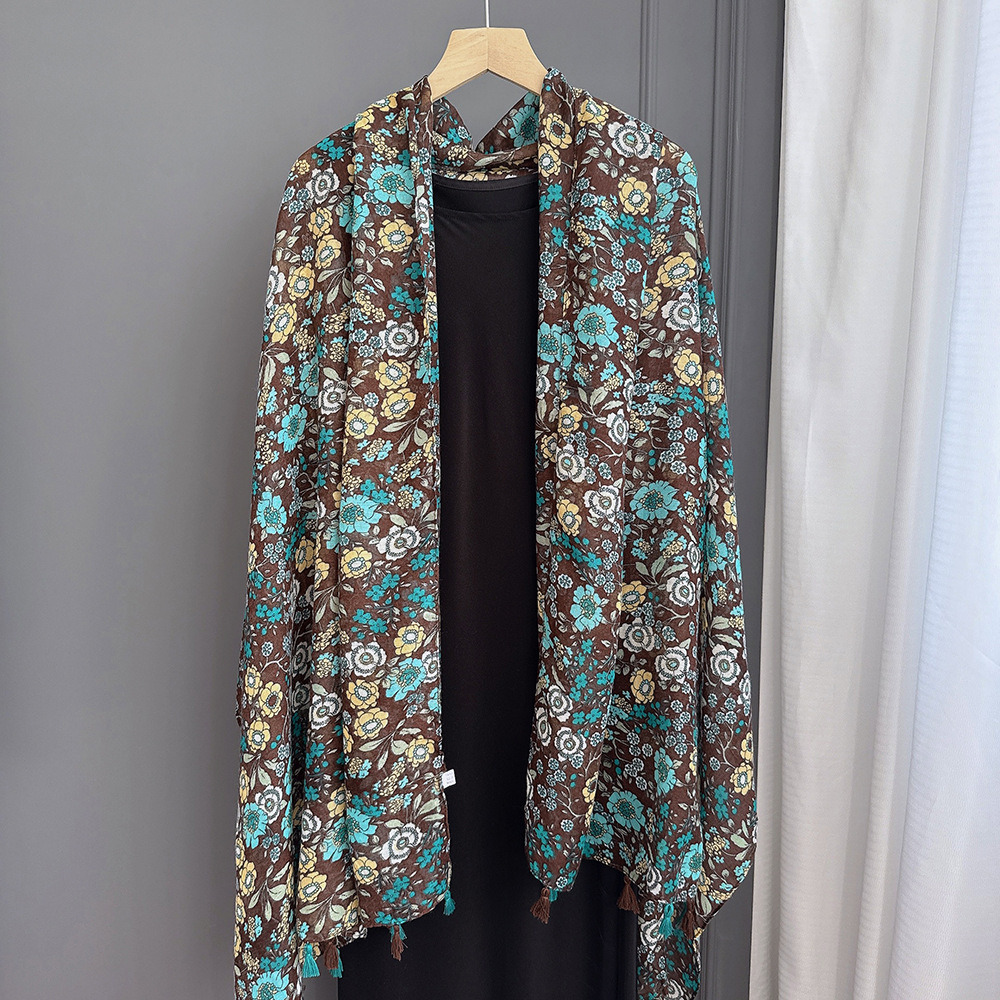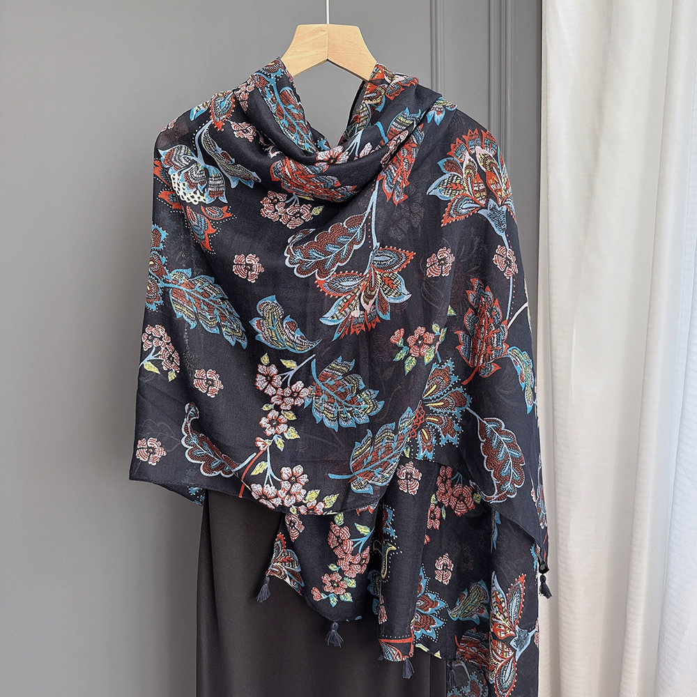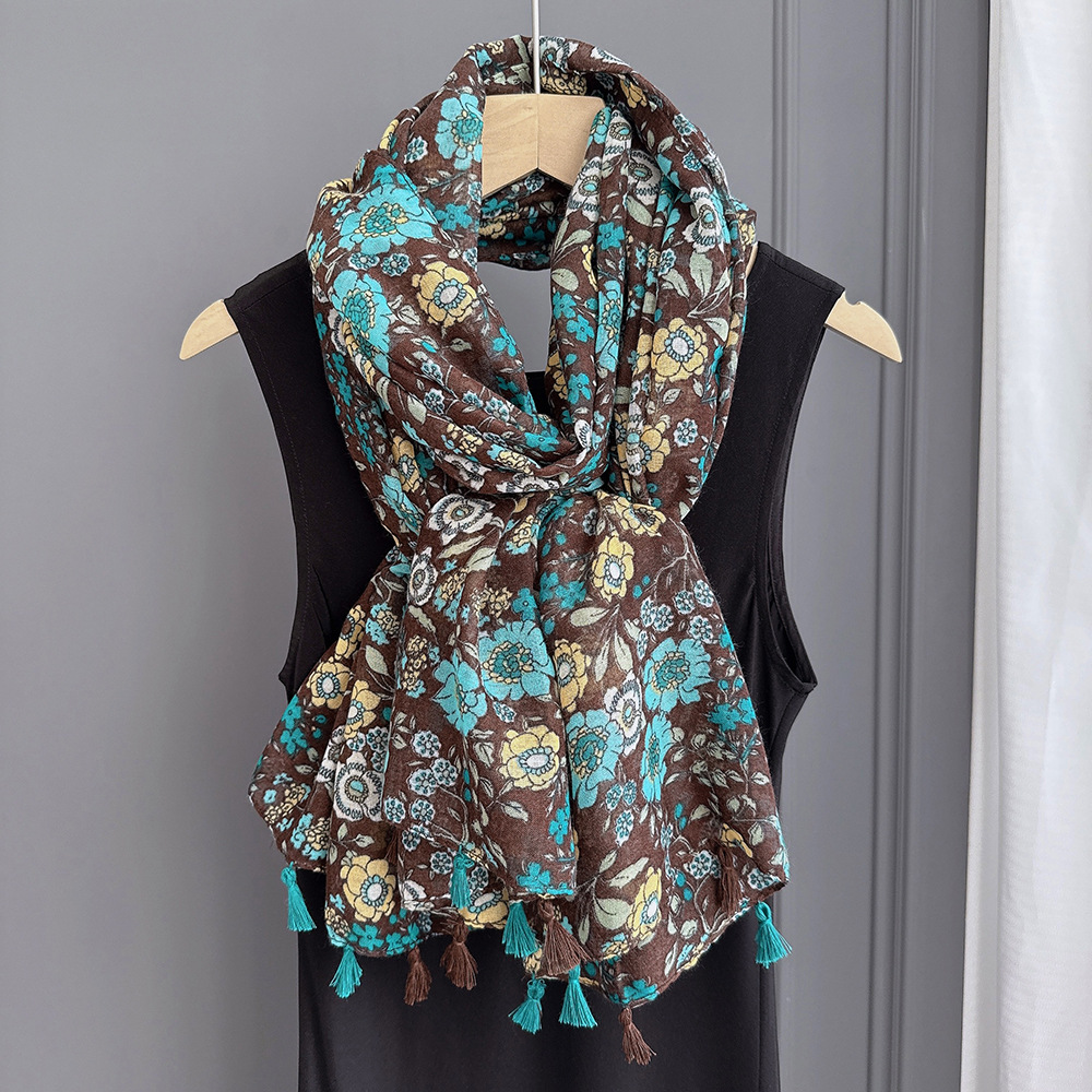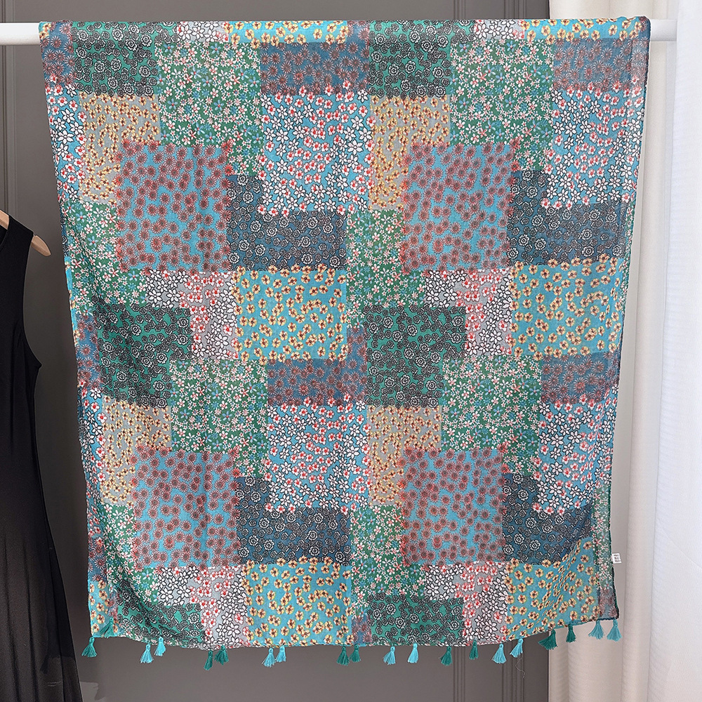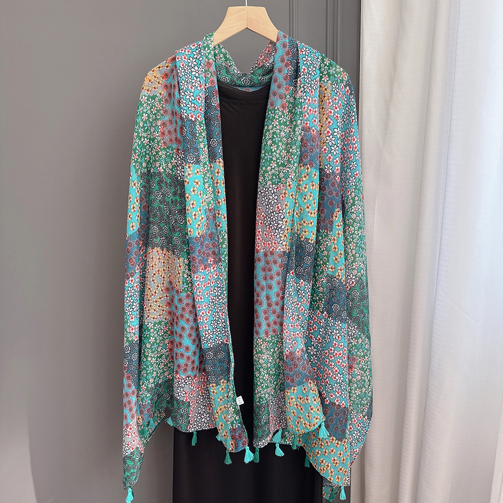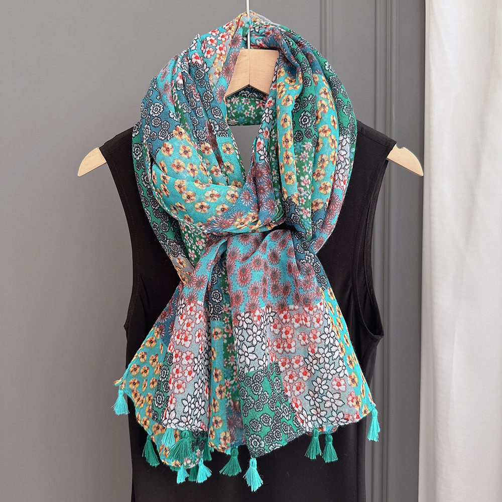 彩色挂须民族风围巾、披肩款,色彩鲜艳,旅游拍必备单品。