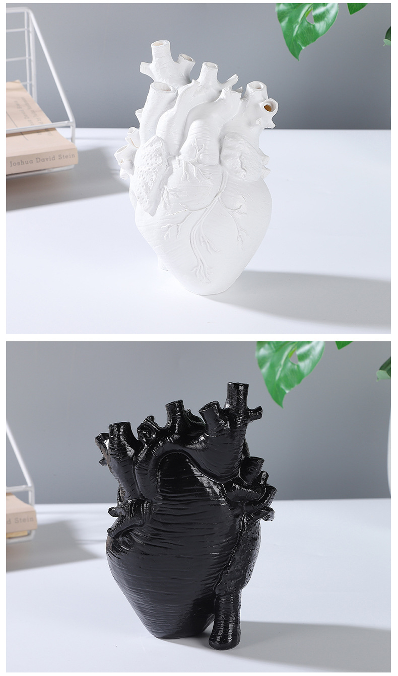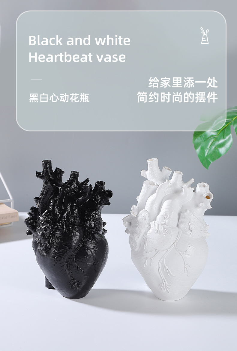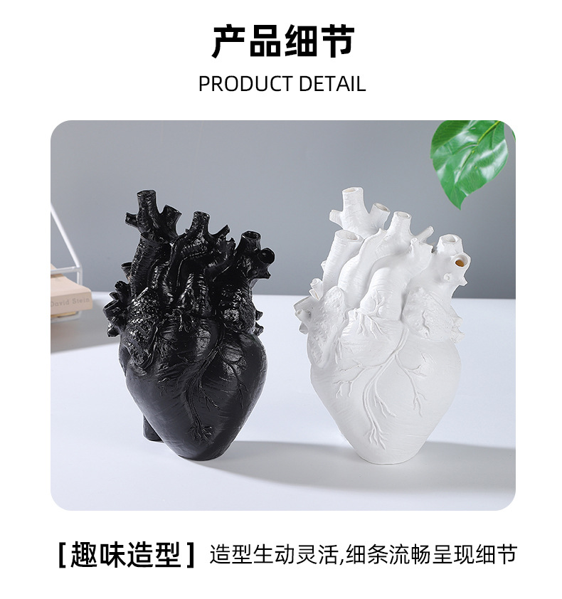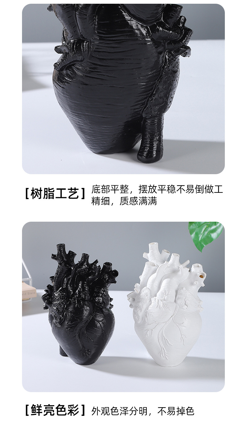 跨境创意心脏造型树脂工艺品摆件黑白双色花瓶家居桌面插花装饰品