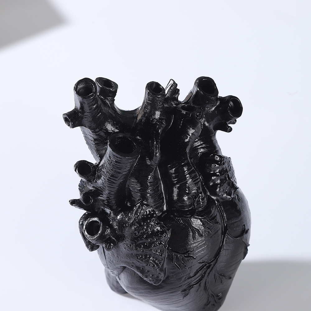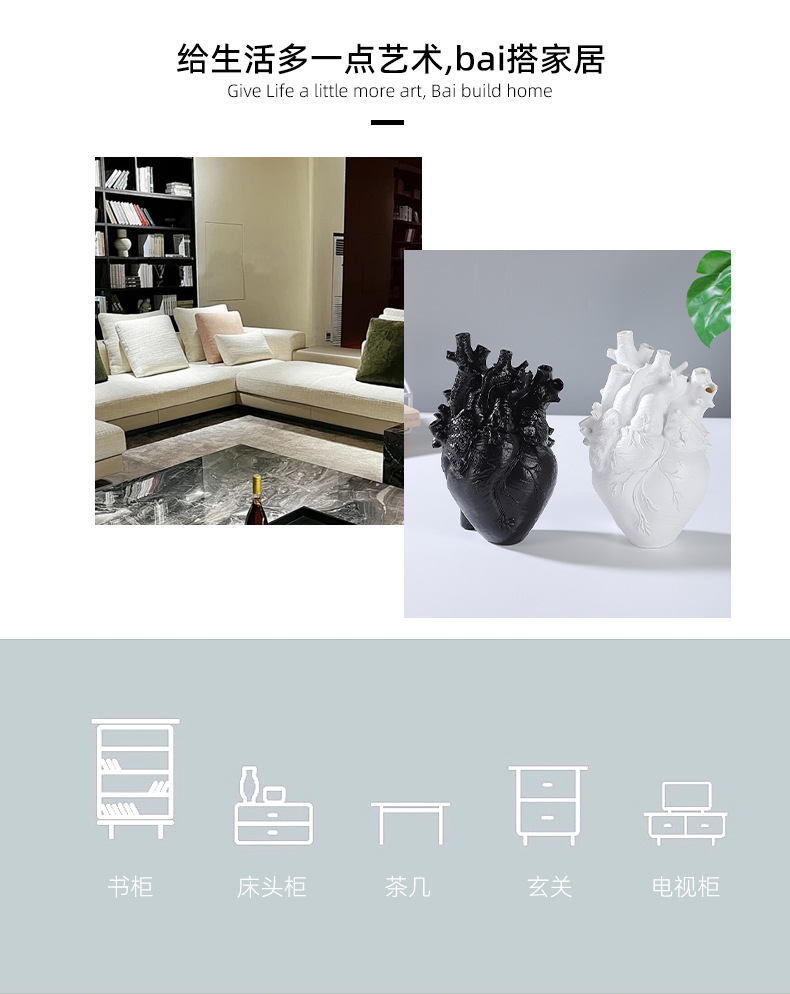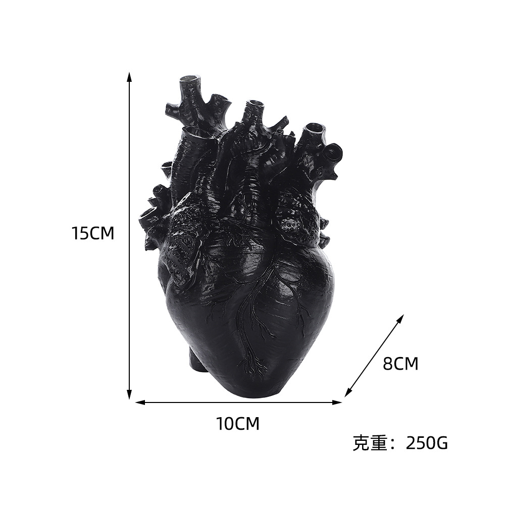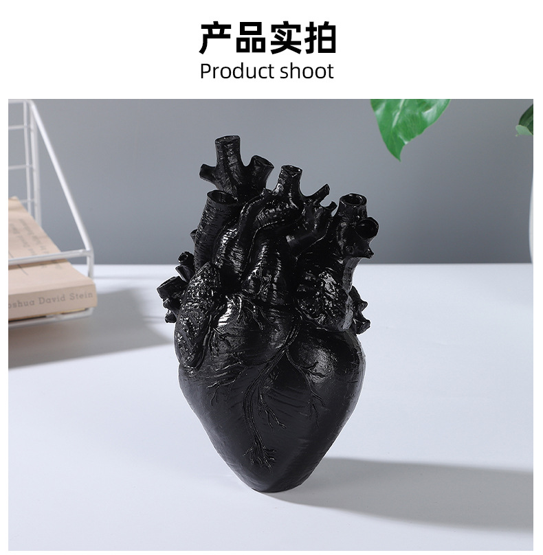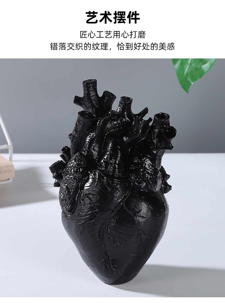 跨境创意心脏造型树脂工艺品摆件黑白双色花瓶家居桌面插花装饰品