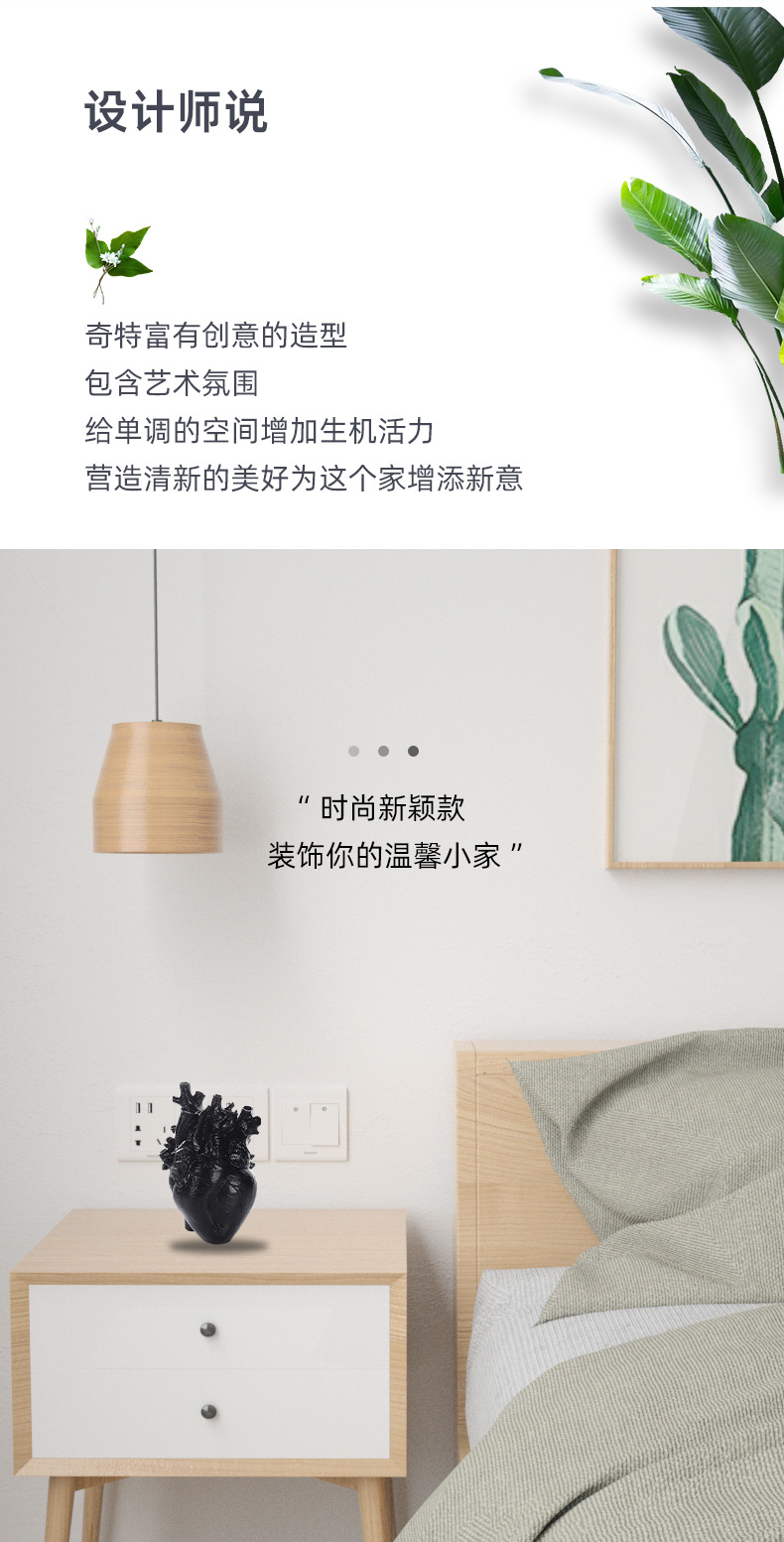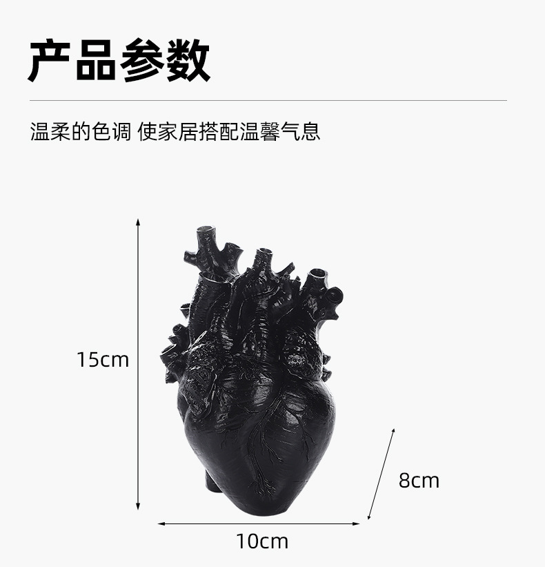 跨境创意心脏造型树脂工艺品摆件黑白双色花瓶家居桌面插花装饰品 投诉