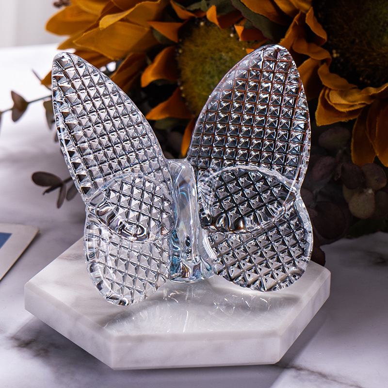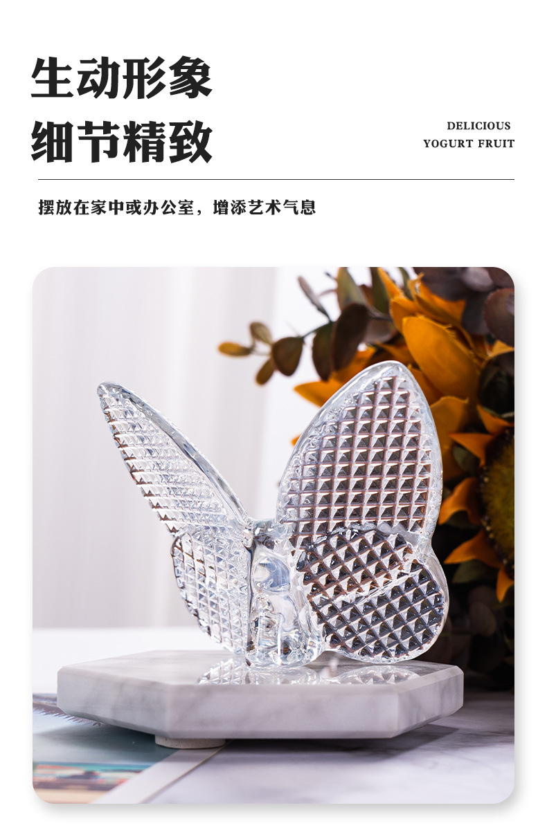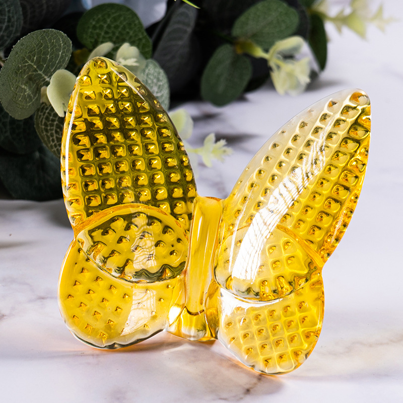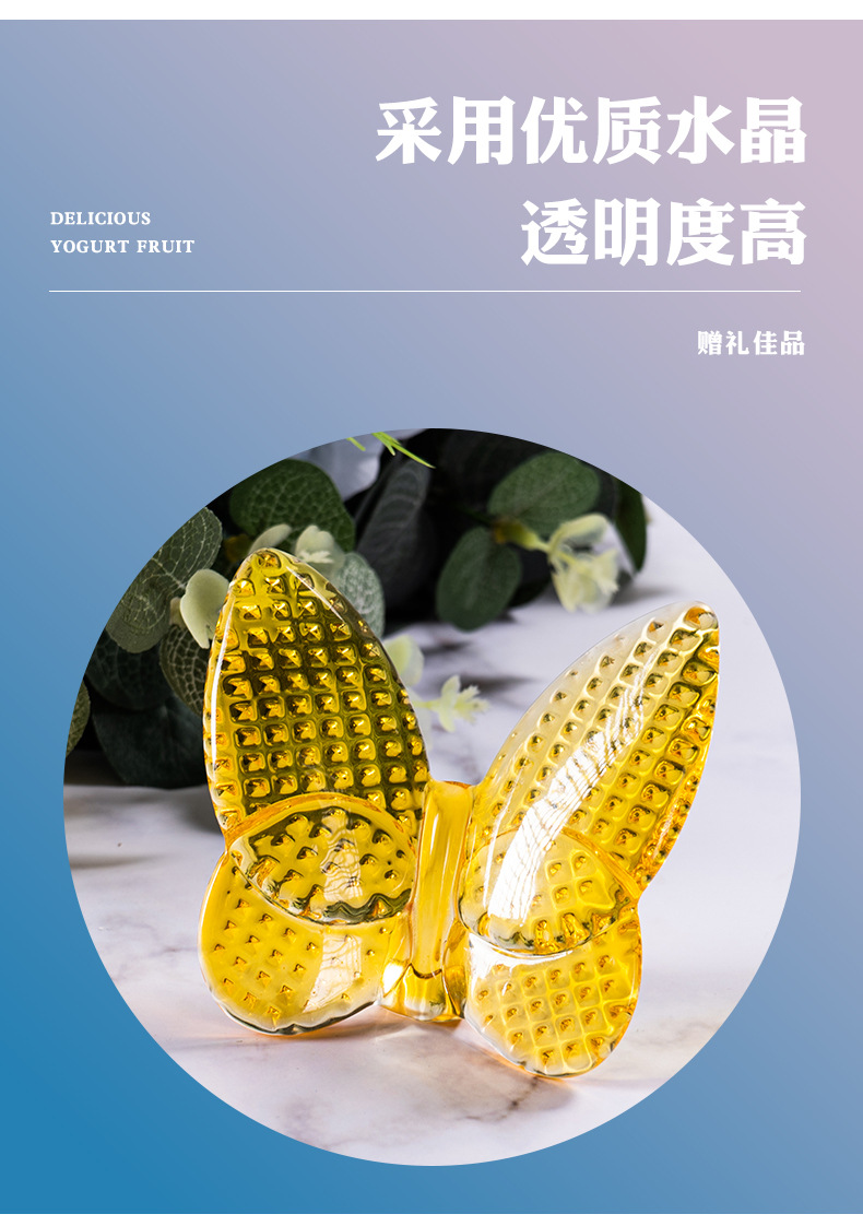 水晶斑点蝴蝶摆件汽车内饰装饰品室内书桌水晶玻璃蝴蝶桌面点缀品