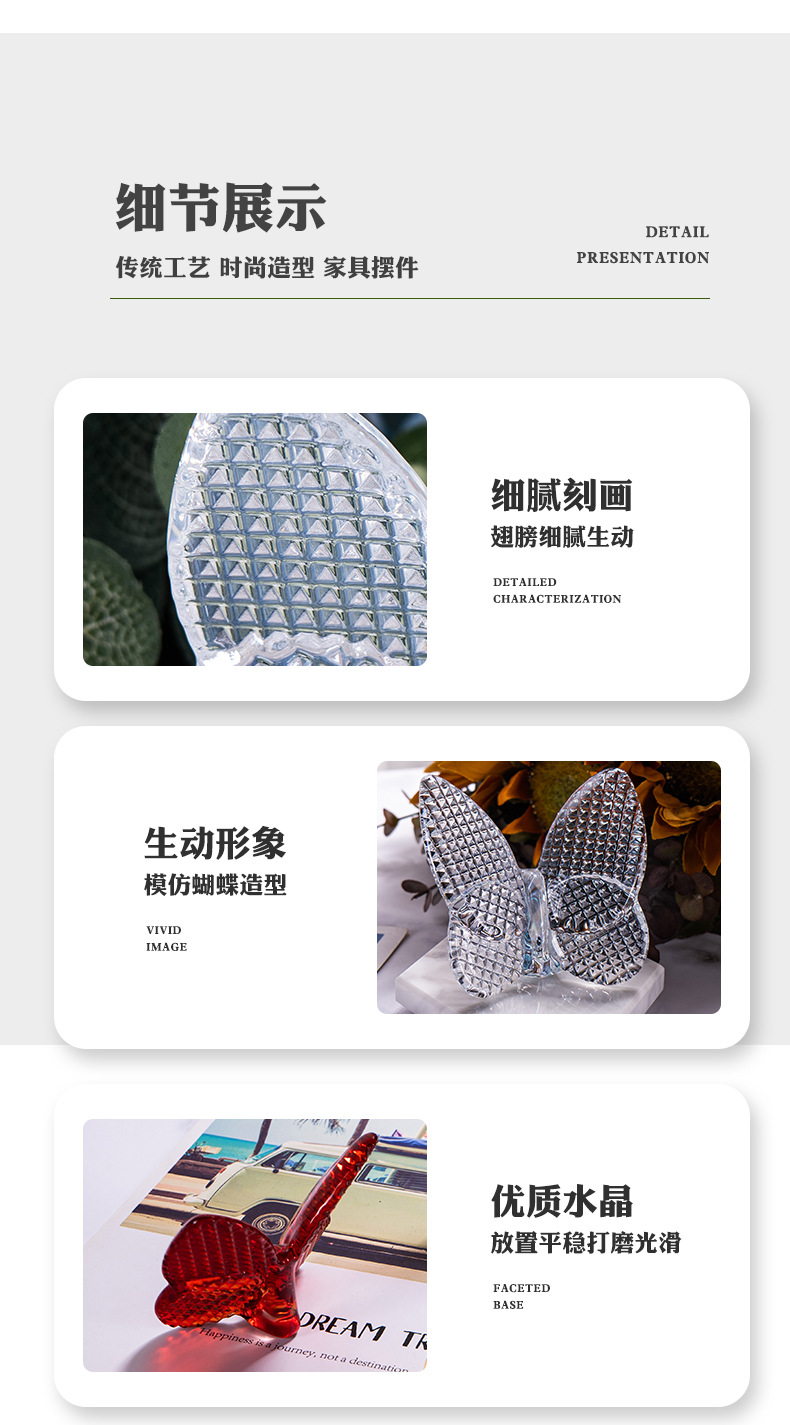 水晶斑点蝴蝶摆件汽车内饰装饰品室内书桌水晶玻璃蝴蝶桌面点缀品 投诉
