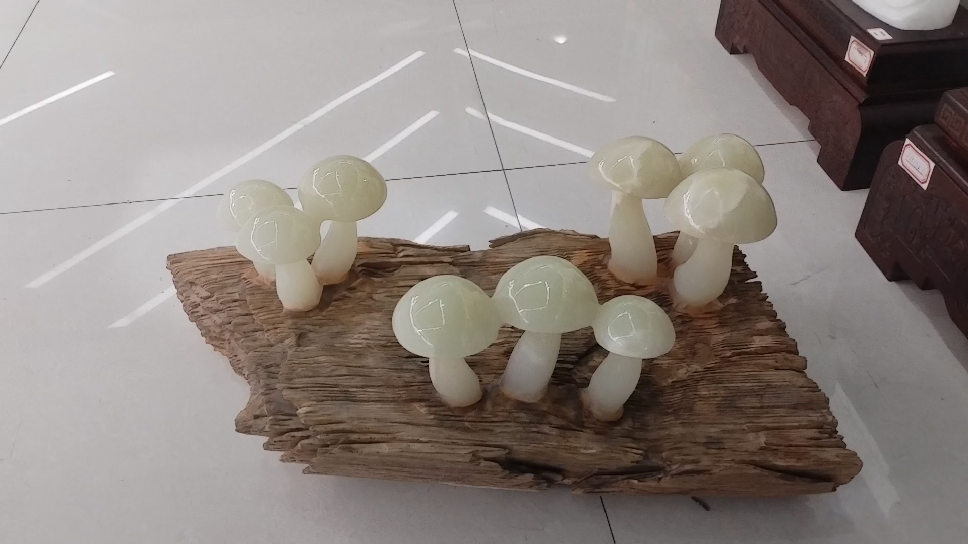 巴基斯坦天然玉石精雕摆件寓意:枯木逢春,欣欣向荣