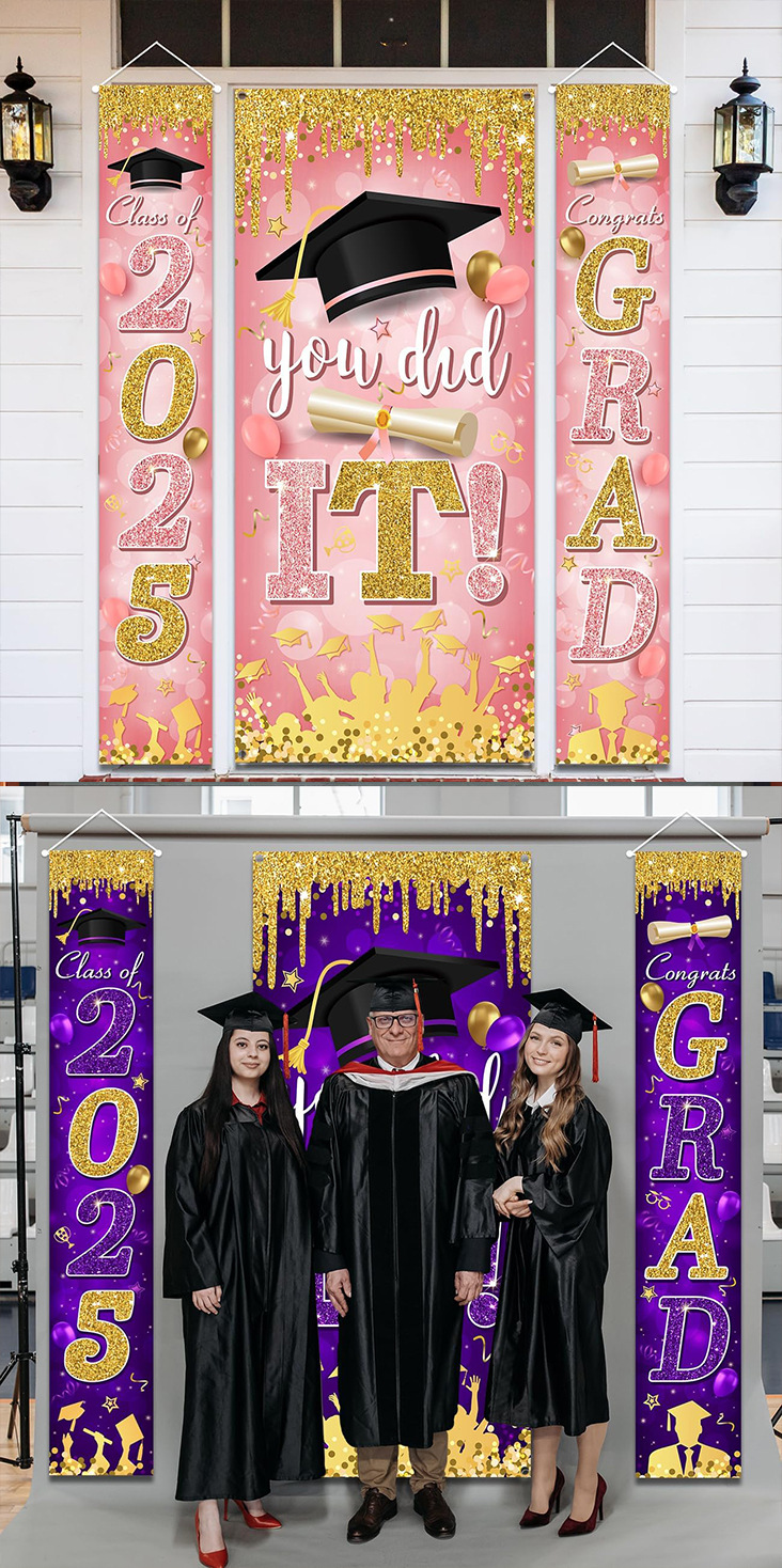 跨境新款2025庆祝毕业4件套门旗横幅庆典晚会毕业聚会装饰门帘旗