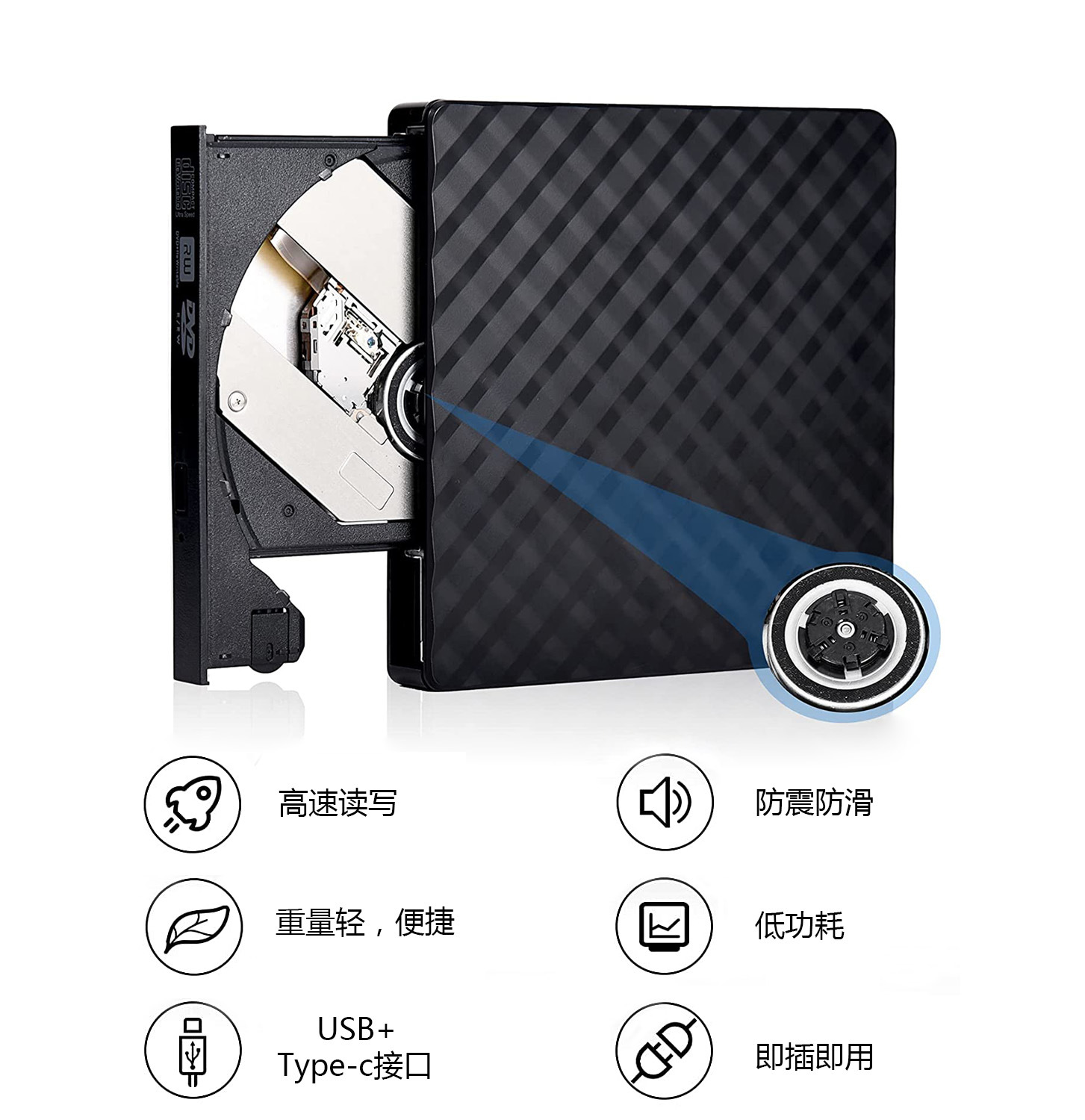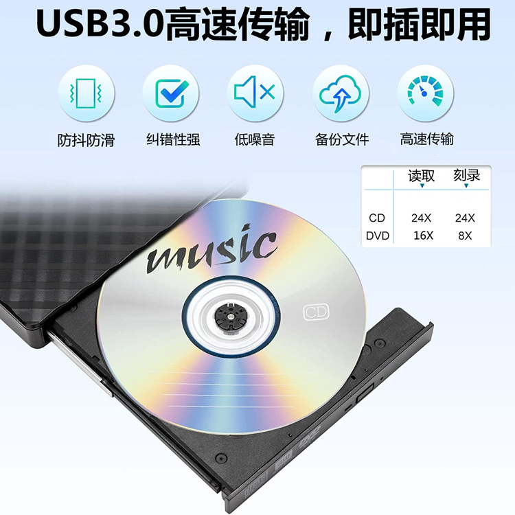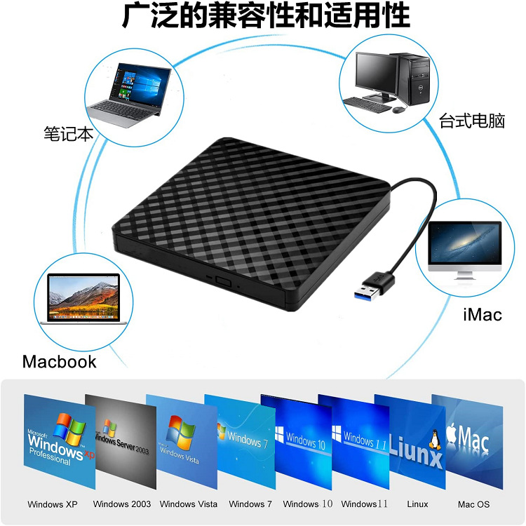 OEM定制电脑光驱笔记本外置cd刻录机usb双接口移动光碟播放器便携